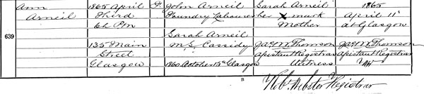 | ARNEIL | ANN | GRANT | 1865 | 644 / 4 / 1017 | Calton (Glasgow) |