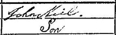 - At the 1874 death registration of his son James he was John Neil (he signed with his mark)