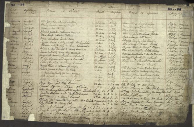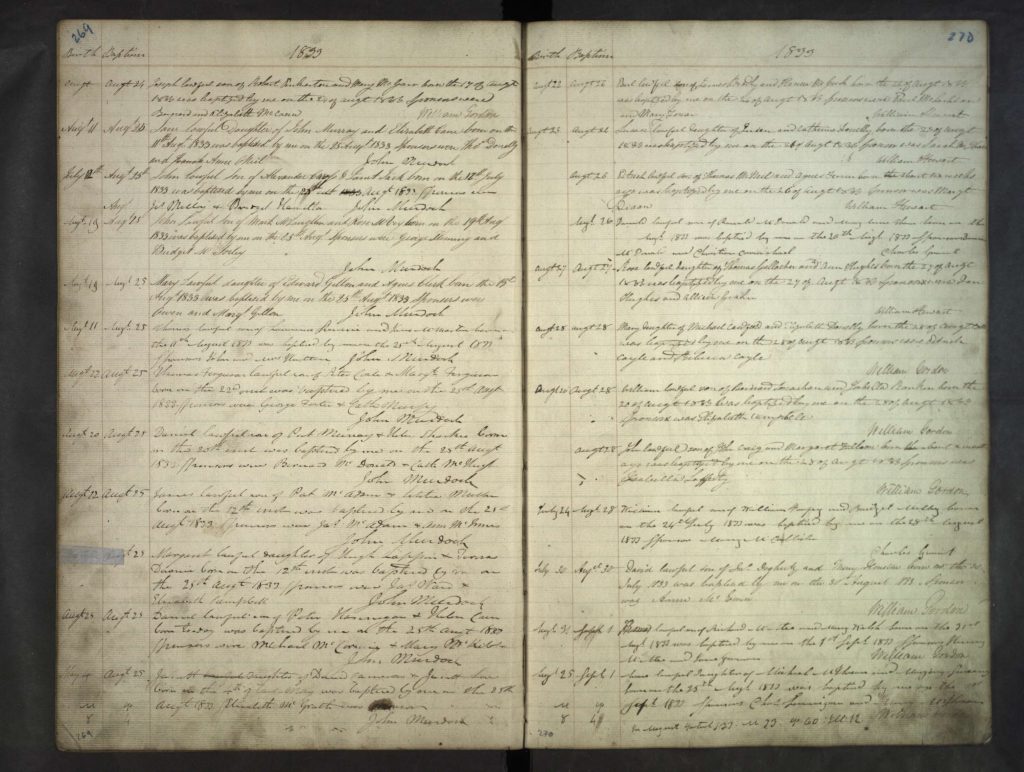 Parish Register, St Andrew’s Cathedral, Glasgow 1836. Find My Past, Scotland Roman Catholic Parish Baptisms SCOT/RC/BAP/0404106. S.C.A Births MP 6212490 – Glasgow, St Andrew’s