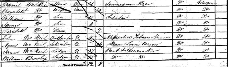 | Elizabeth McNeil | Daughter | – | F | 1 | 1850 | – | Glasgow, Lanarkshire |