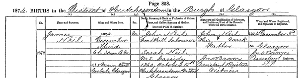| Mary Neil | Daughter | S | F | 19 | Tobacco Spinner | Worker | Glasgow, Lanarkshire |