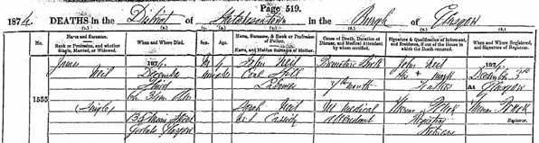 Death of Mary Anne Neil or Chrystal 7 May 1916 in Glasgow