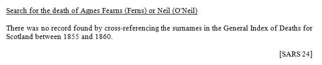 The last known child of John Neil and Mary Anne Chrystal was Isabella.
