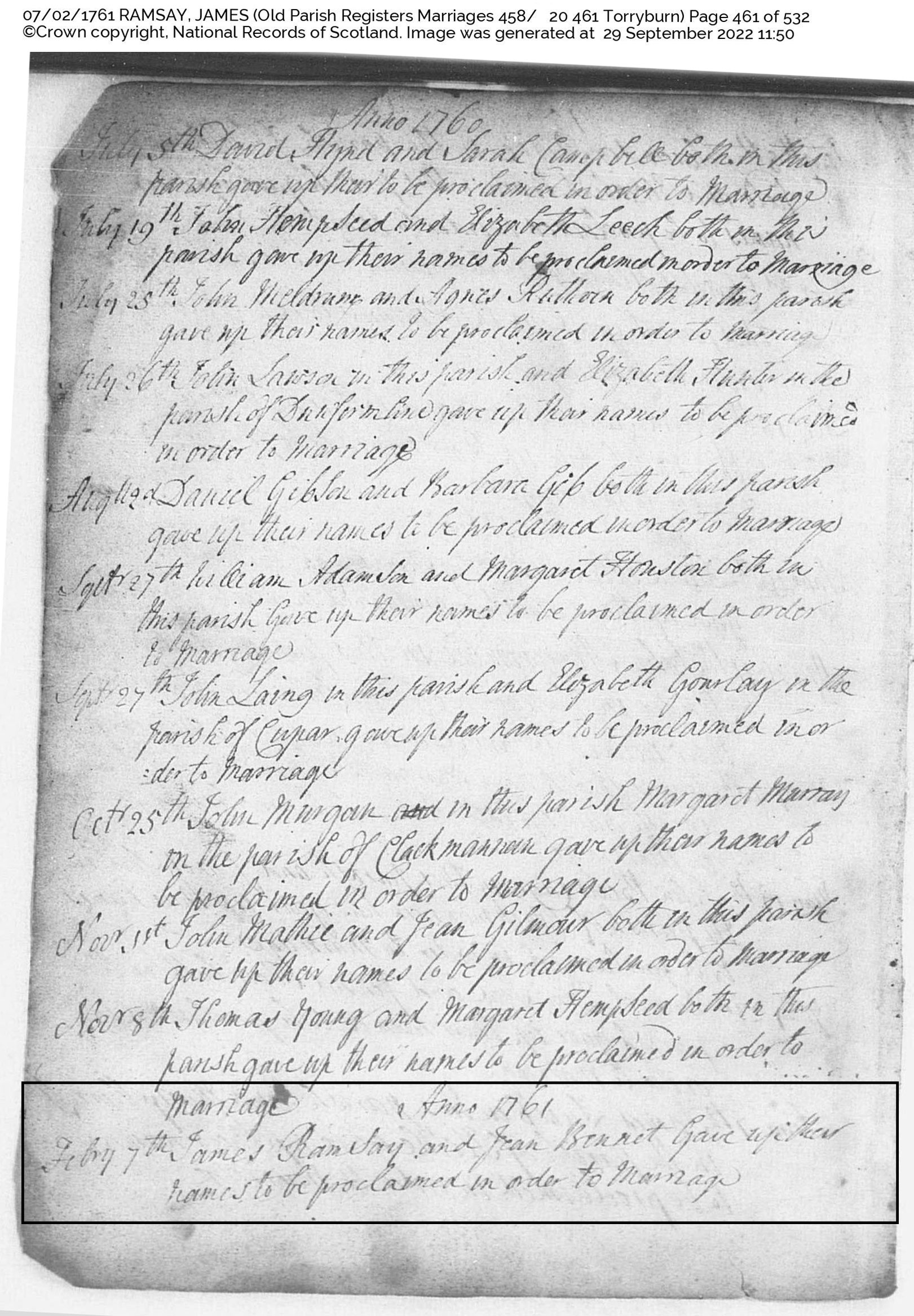 | 1 | SP | CH | MAR | 1761 | R001.jpg | 1762-02-07 MAR James Ramsay + Jean Bennet – Torryburn [[R001]] | LOCAL | ONLINE |