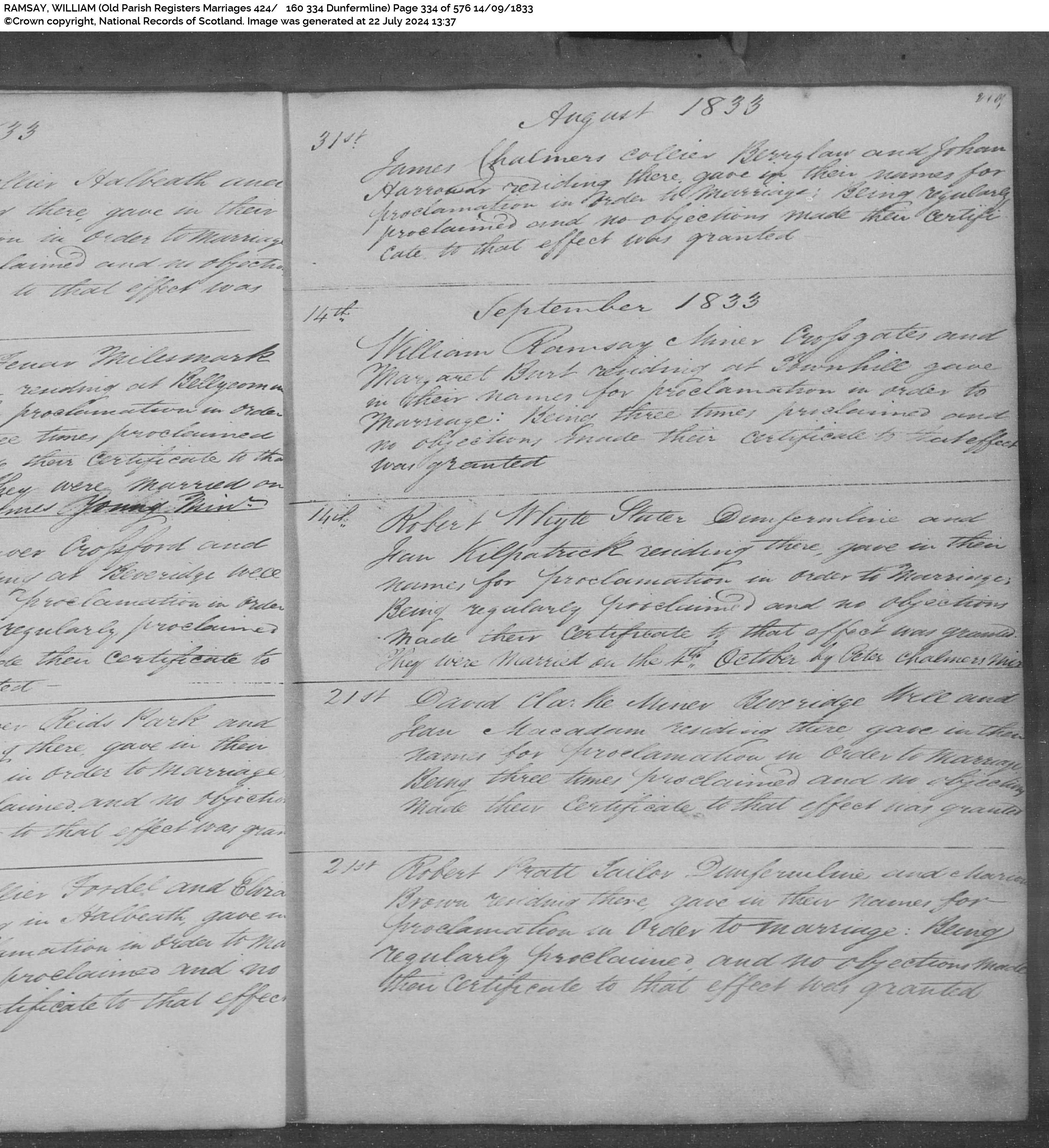 | 4 | SP | CH | MAR | 1833 | R004.jpg | 1833-09-14 MAR William Ramsay + Margaret Burt [R004]] | LOCAL | ONLINE |