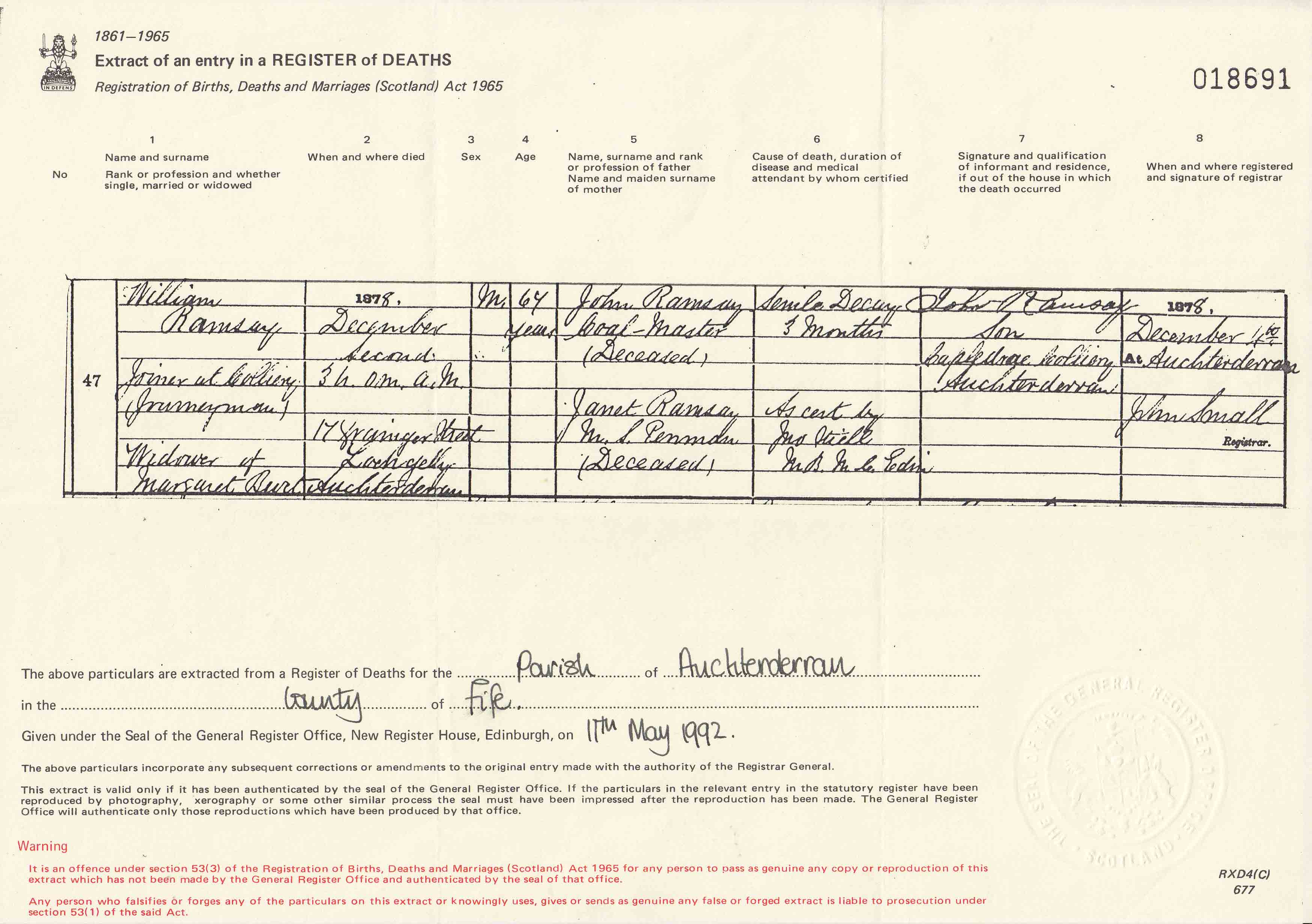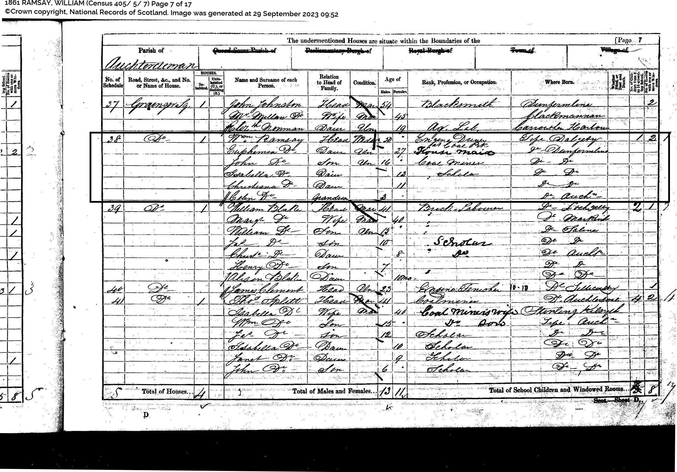 | 36 | SP | STAT | CEN | 1861 | R033.jpg | 1861-04-07 CEN William Ramsay – Grainger Square, Auchterderran, Fife [[R033]] | LOCAL | ONLINE |
