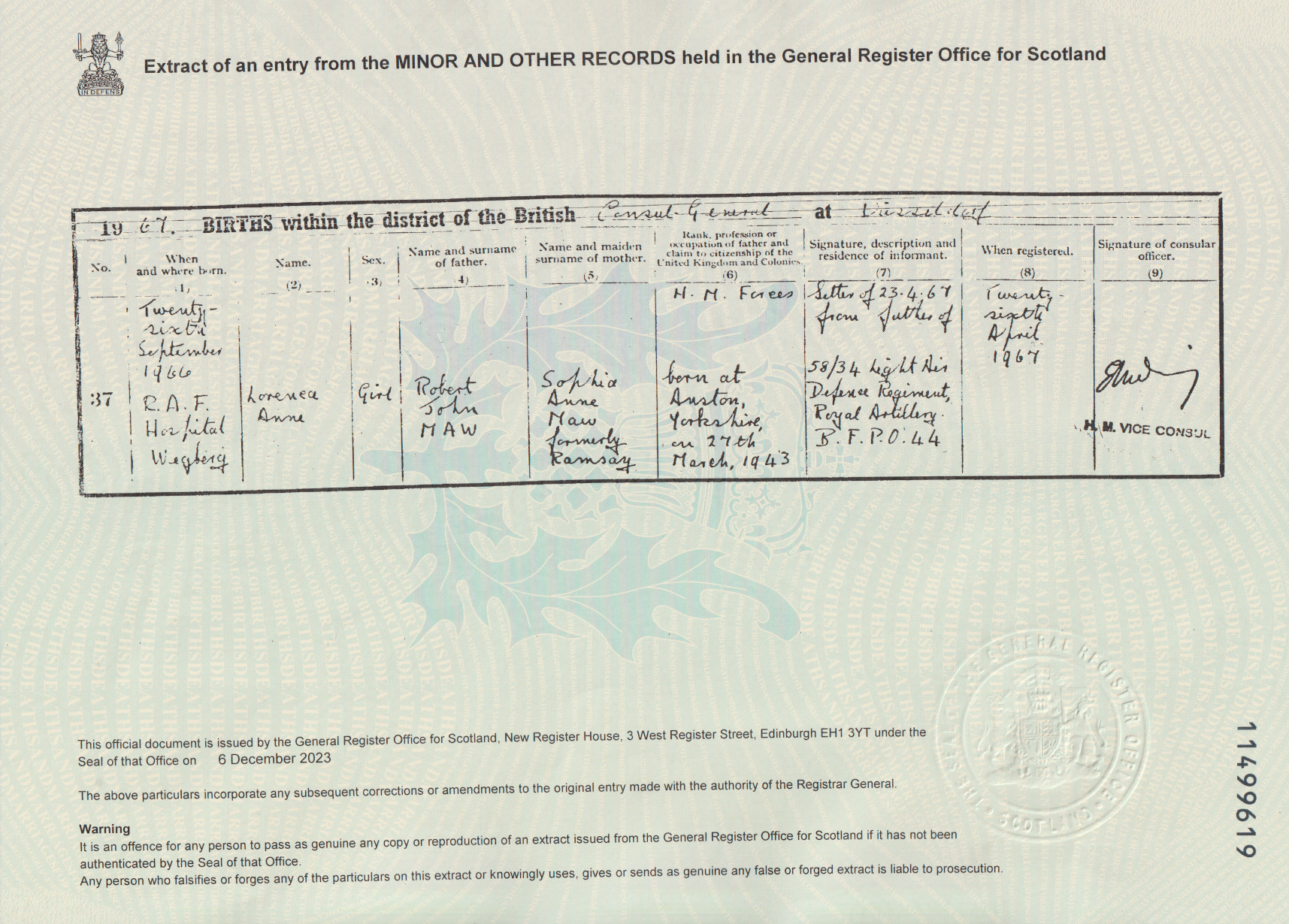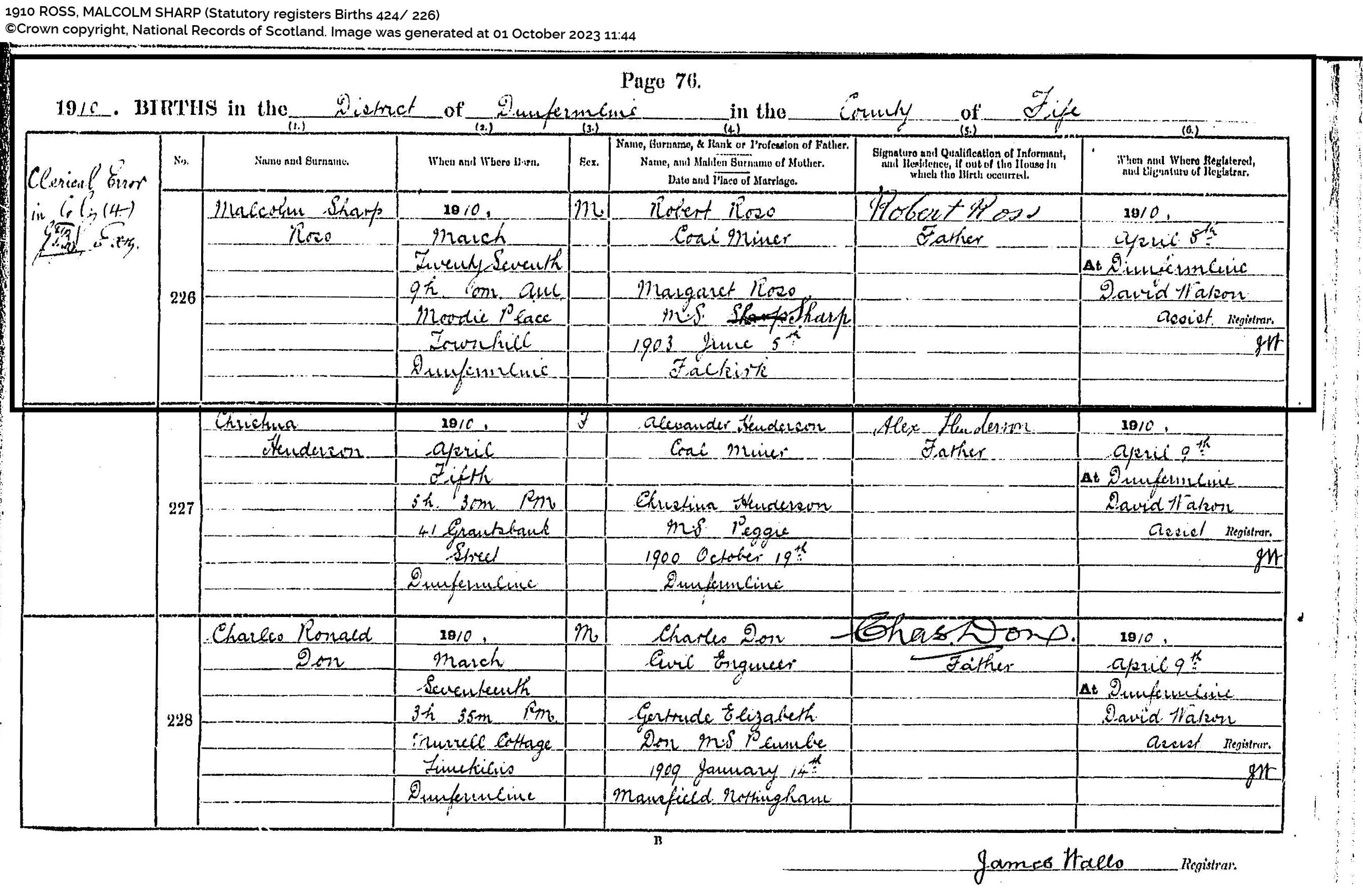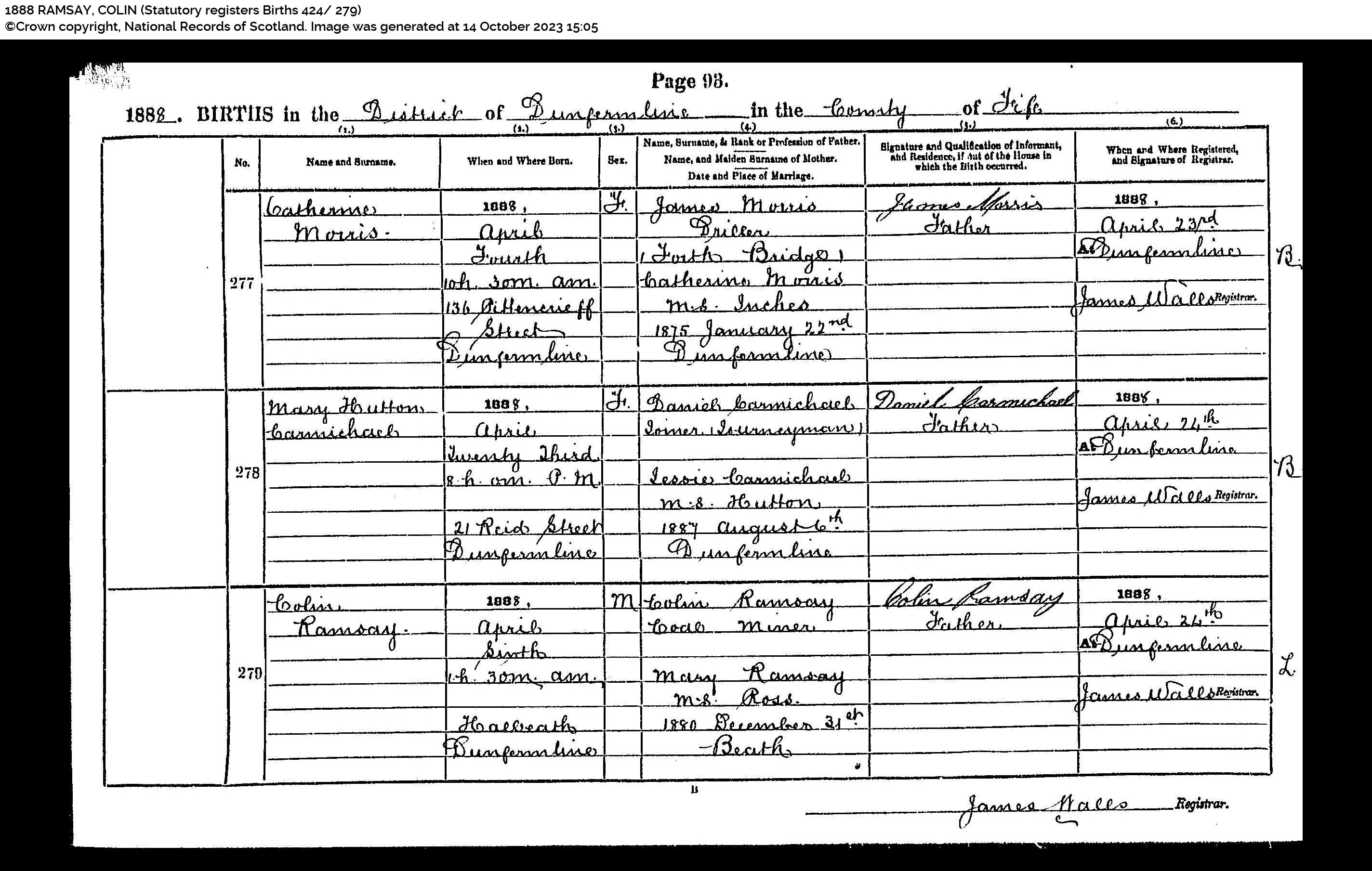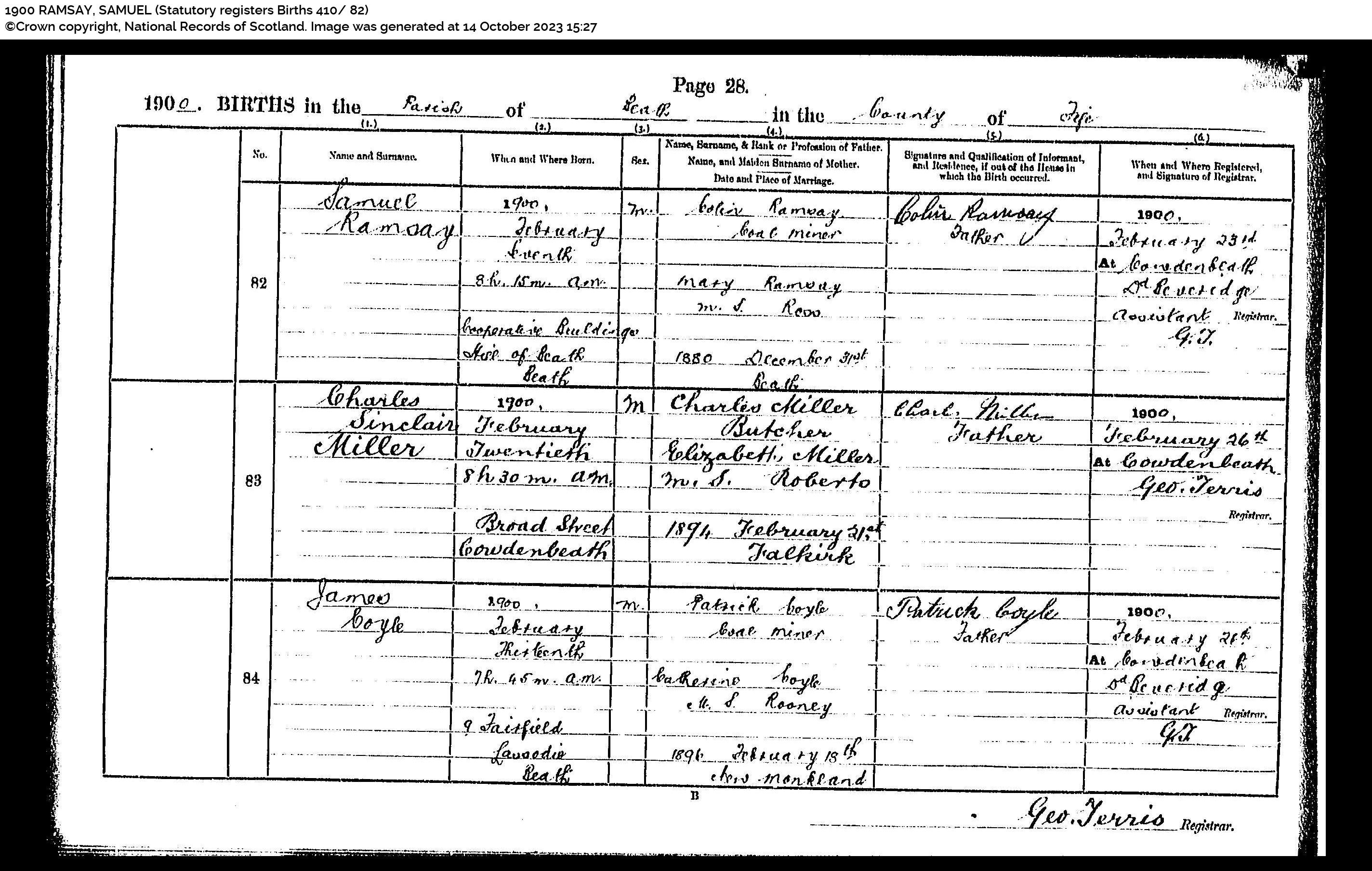 | 323 | SP | STAT | DEA | 1969 | R293.jpg | 1969-07-06 DEA Colin Ramsay son of Colin Ramsay + Mary Hunter Ross – Musselburgh [[R293]] | LOCAL | ONLINE |