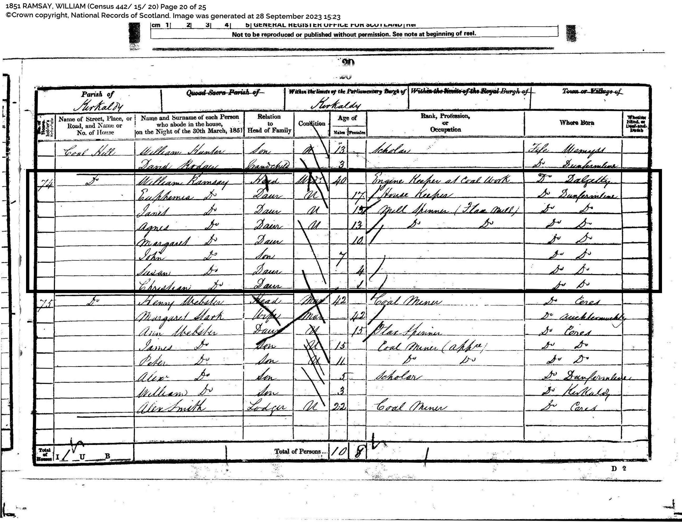 | 29 | SP | STAT | CEN | 1851 | R026.jpg | 1851-03-30 CEN William Ramsay, Coal Hill Kirkcaldy, Fife, Scotland [[R026]] | LOCAL | ONLINE |