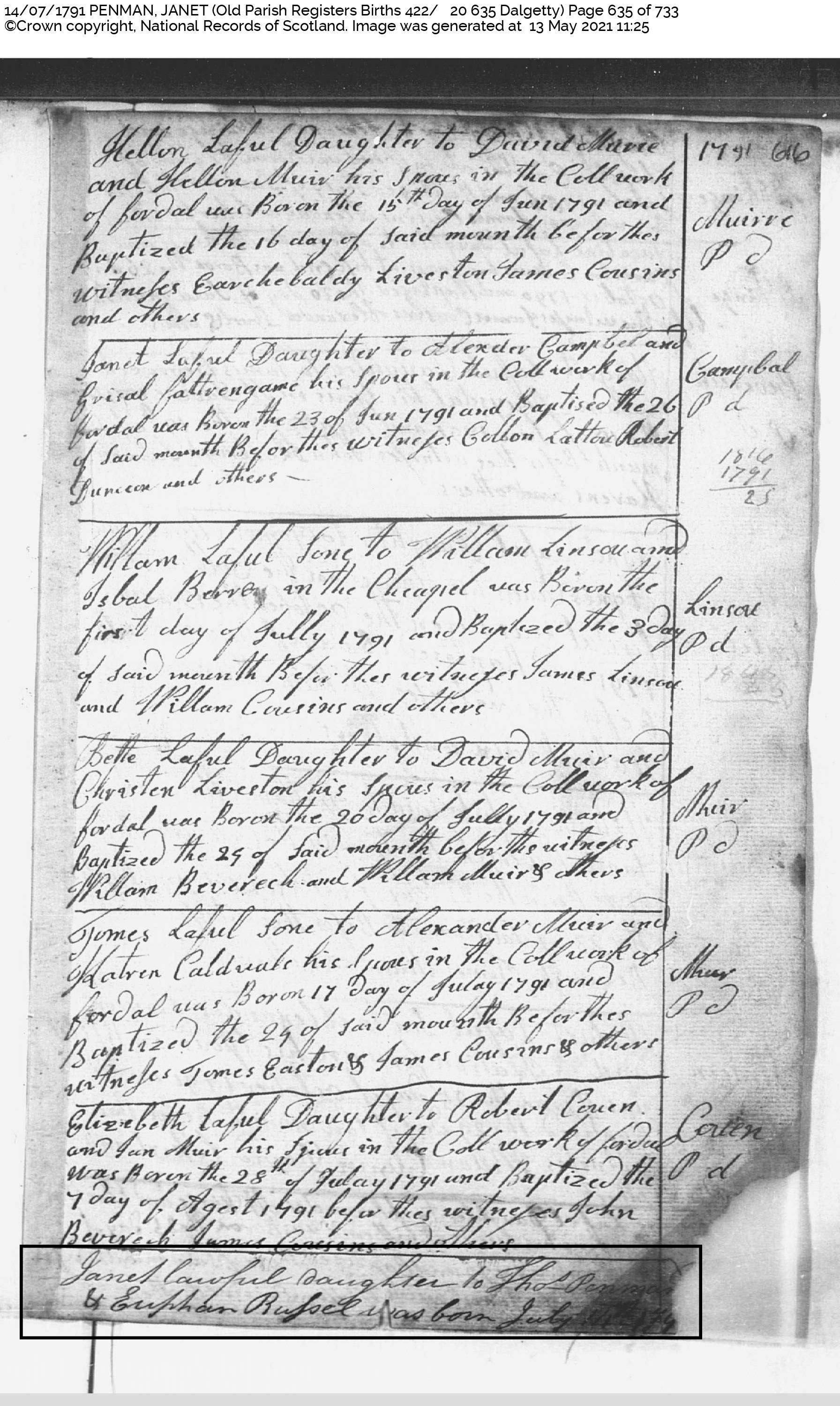 | 50 | SP | CH | BIR | 1791 | R048.jpg | 1791-07-14 BIR Janet Penman – dau of Thomas Penman + Euphan Russel [[R048]] | LOCAL | ONLINE |