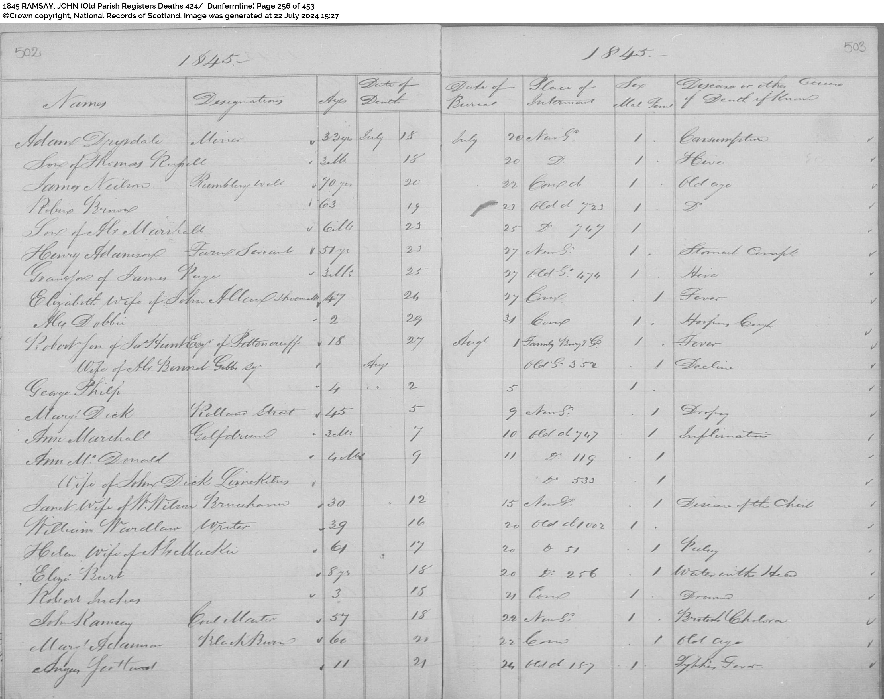 | 51 | SP | STAT | DEA | 1845 | R049.jpg | 1845-08-18 DEA-BUR John Ramsay, Coal Master, Dunfermline [[R049]] | LOCAL | ONLINE |