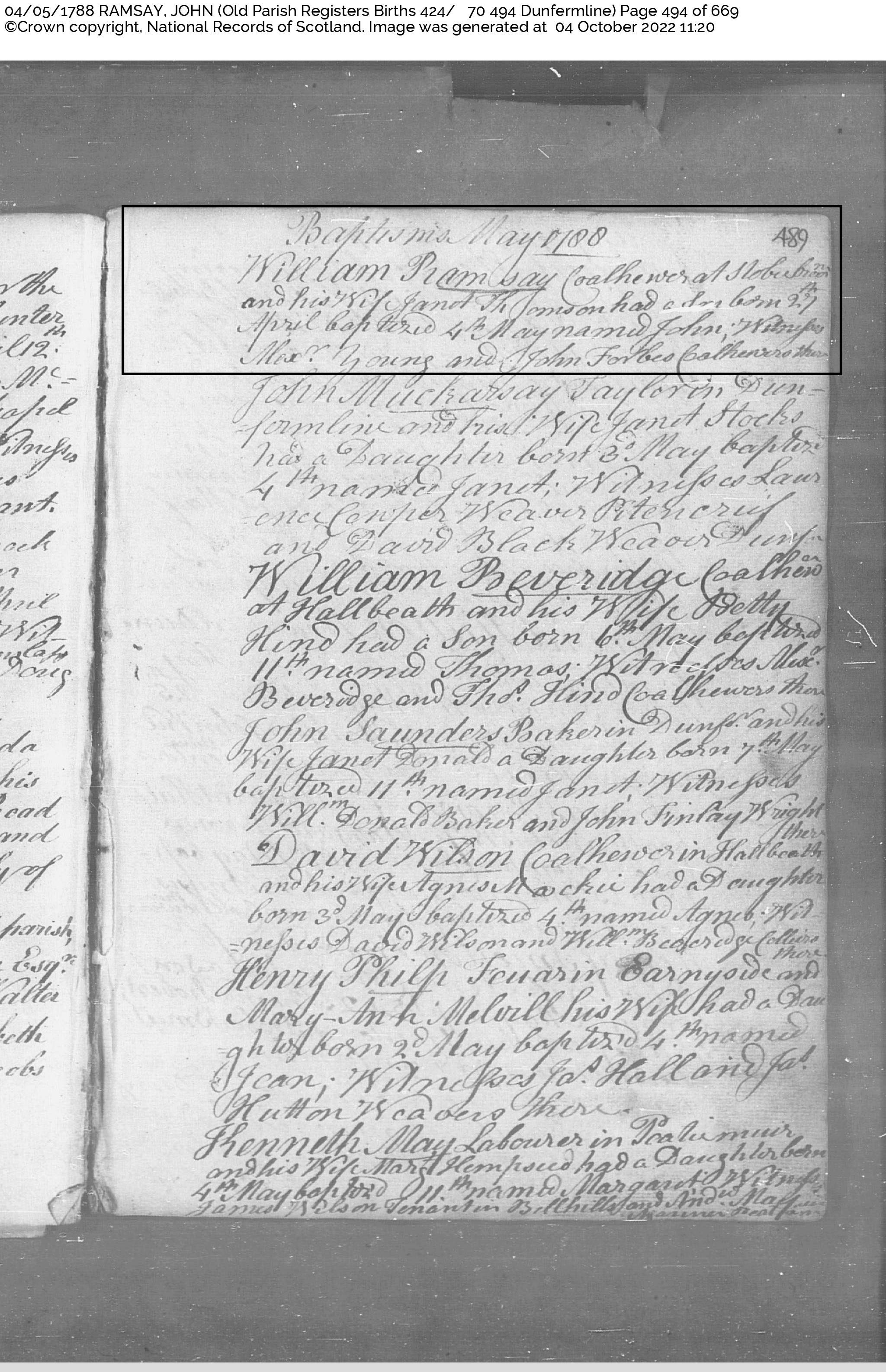 | 52 | SP | CH | BIR BAP | 1788 | R050.jpg | 1788-04-27 BIR BAP John Ramsay – son of William Ramsay and Janet Thomson [[R050]] | LOCAL | ONLINE |