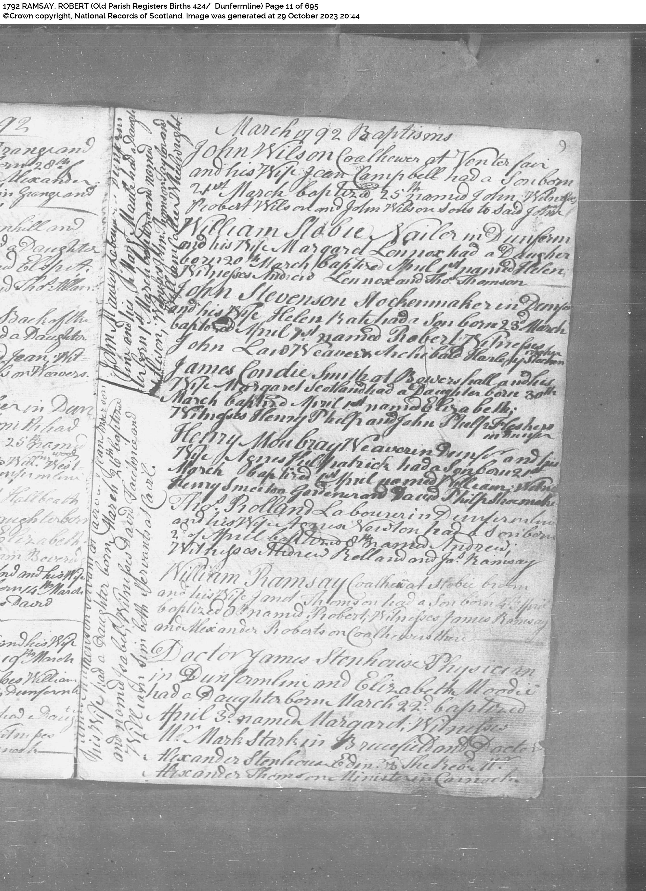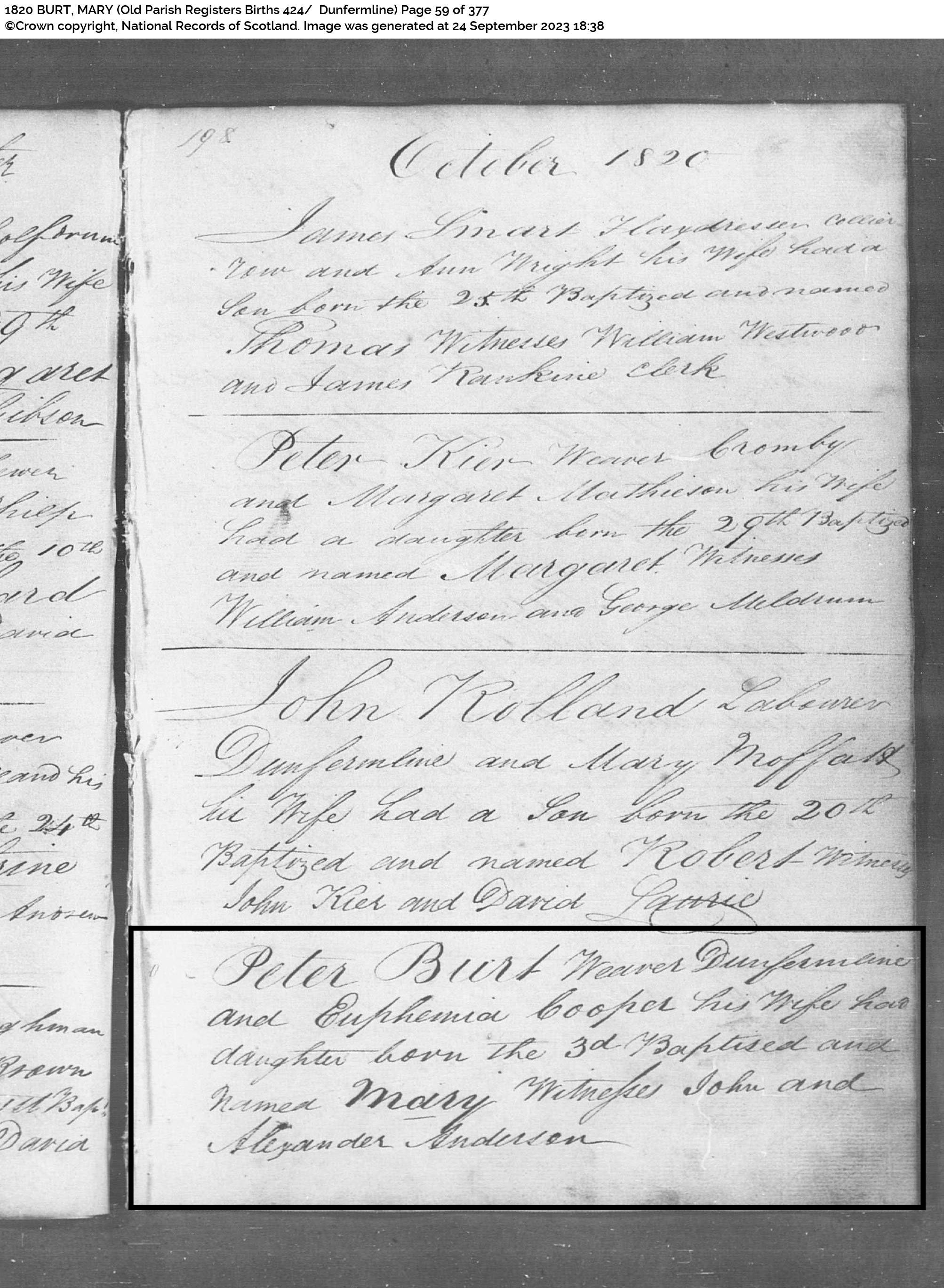 | 81 | SP | OPR | MAR | 1809 | R073 | 1809-0114 MAR Peter Burt + Euphan Cowper, Dunfermline [[R073]] | LOCAL | ONLINE |