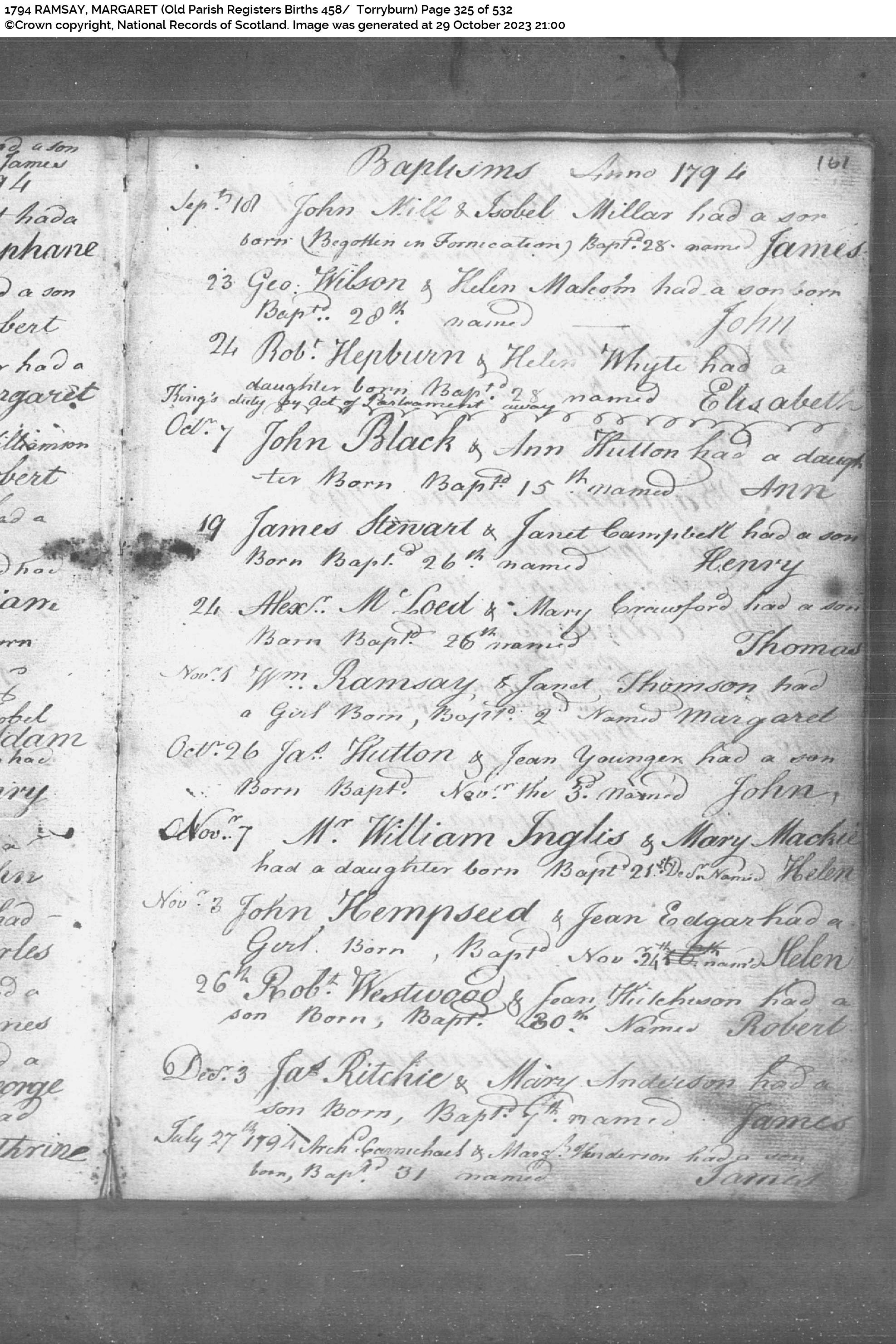 | 56 | SP | CH | BAP | 1794 | R054.jpg | 1794-11-02 BAP Margaret Ramsay child of William Ramsay + Janet Thomson – Torryburn Parish [[R054]] | LOCAL | ONLINE |