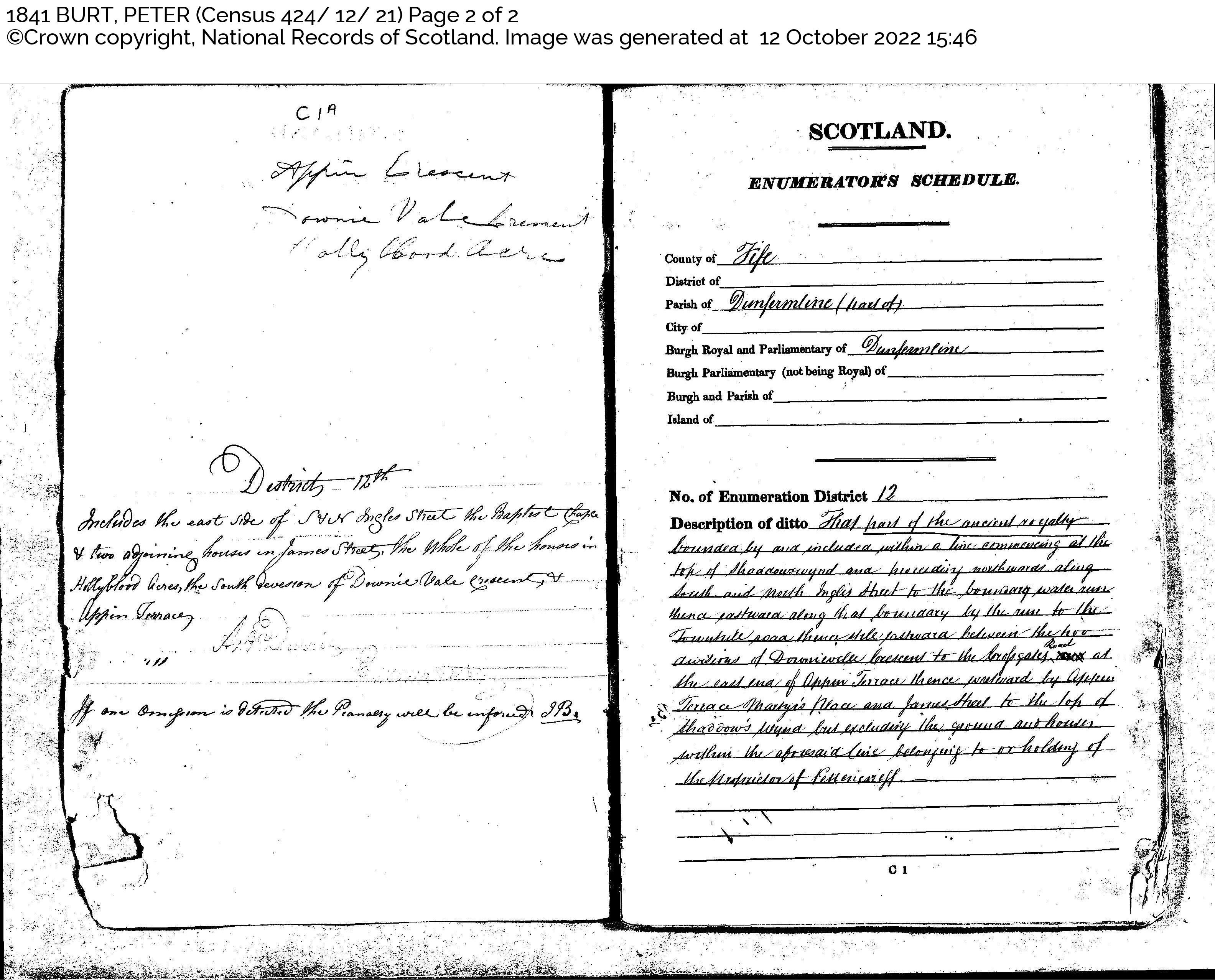 | 74 | SP | STAT | CEN | 1841 | R071-header1.jpg | 1841-06-06 CEN Peter Burt – Appin Crescent, Dunfermline [[R071-header1]] | LOCAL | ONLINE |
