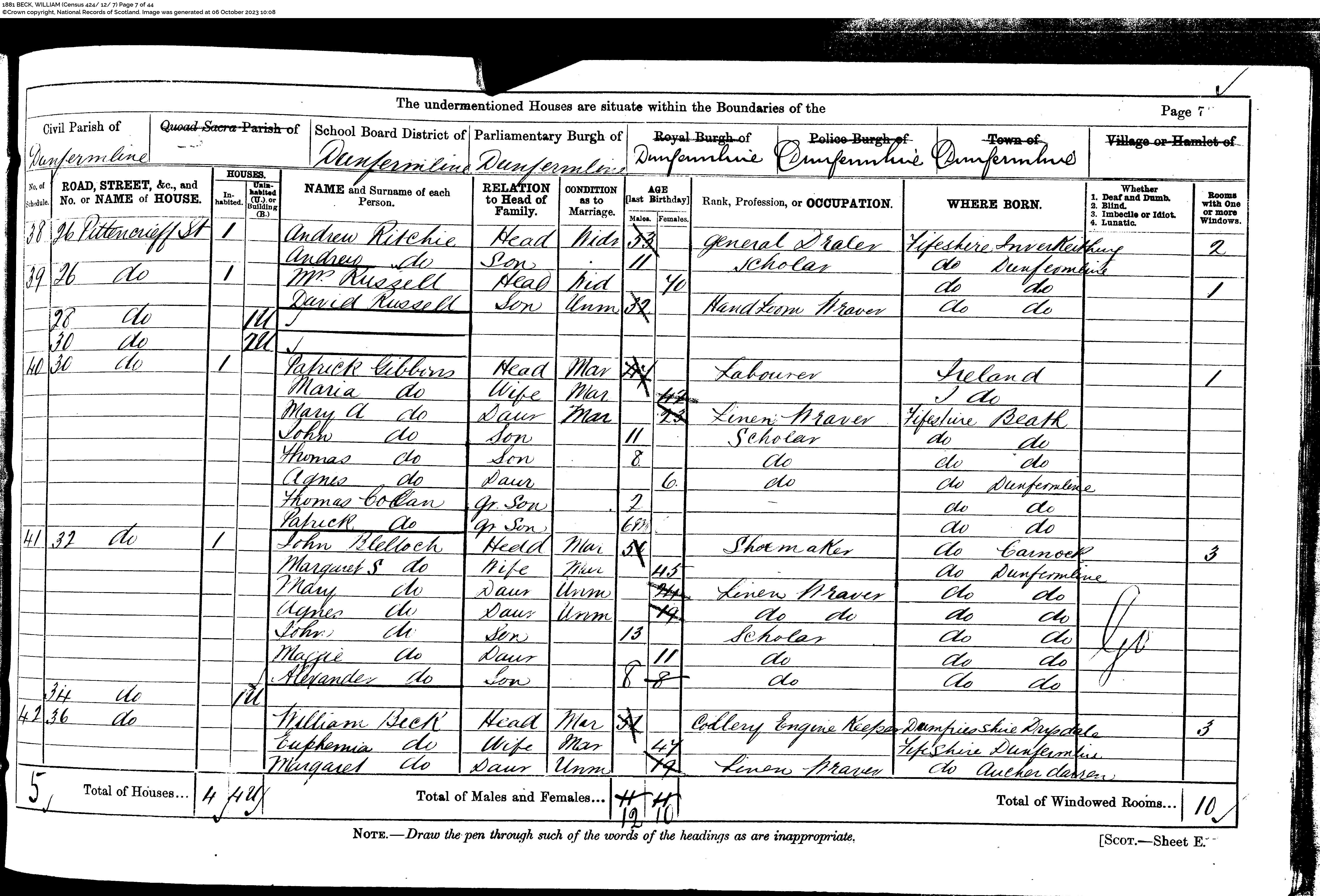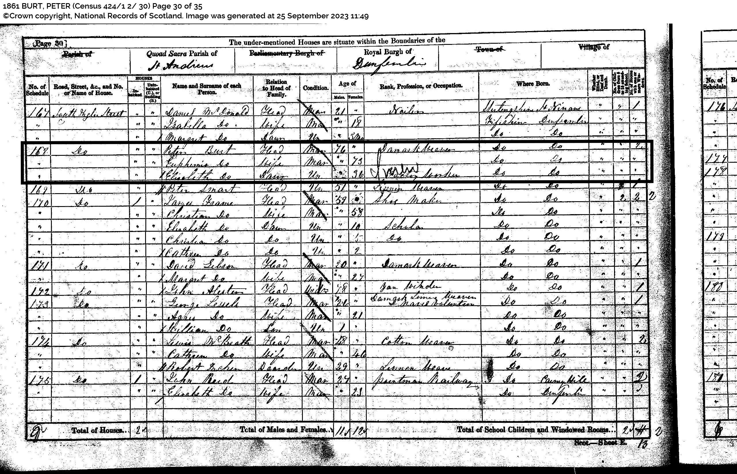 | 79 | SP | STAT | CEN | 1851 | R072-part1.jpg | 1851-03-30 CEN Peter Burt – 6 South Inglis Street, Dunfermline [[R072-part1]] | LOCAL | ONLINE |