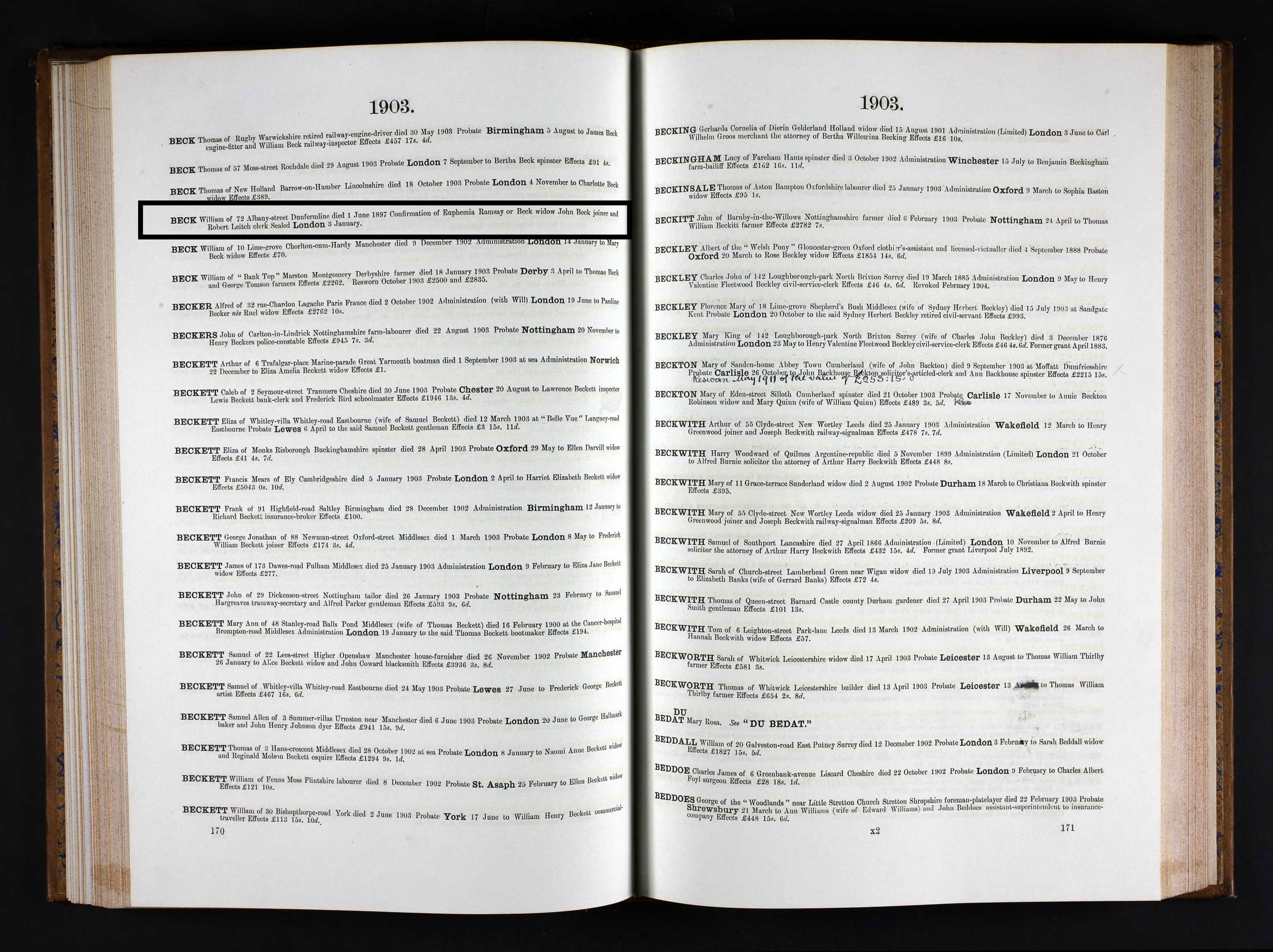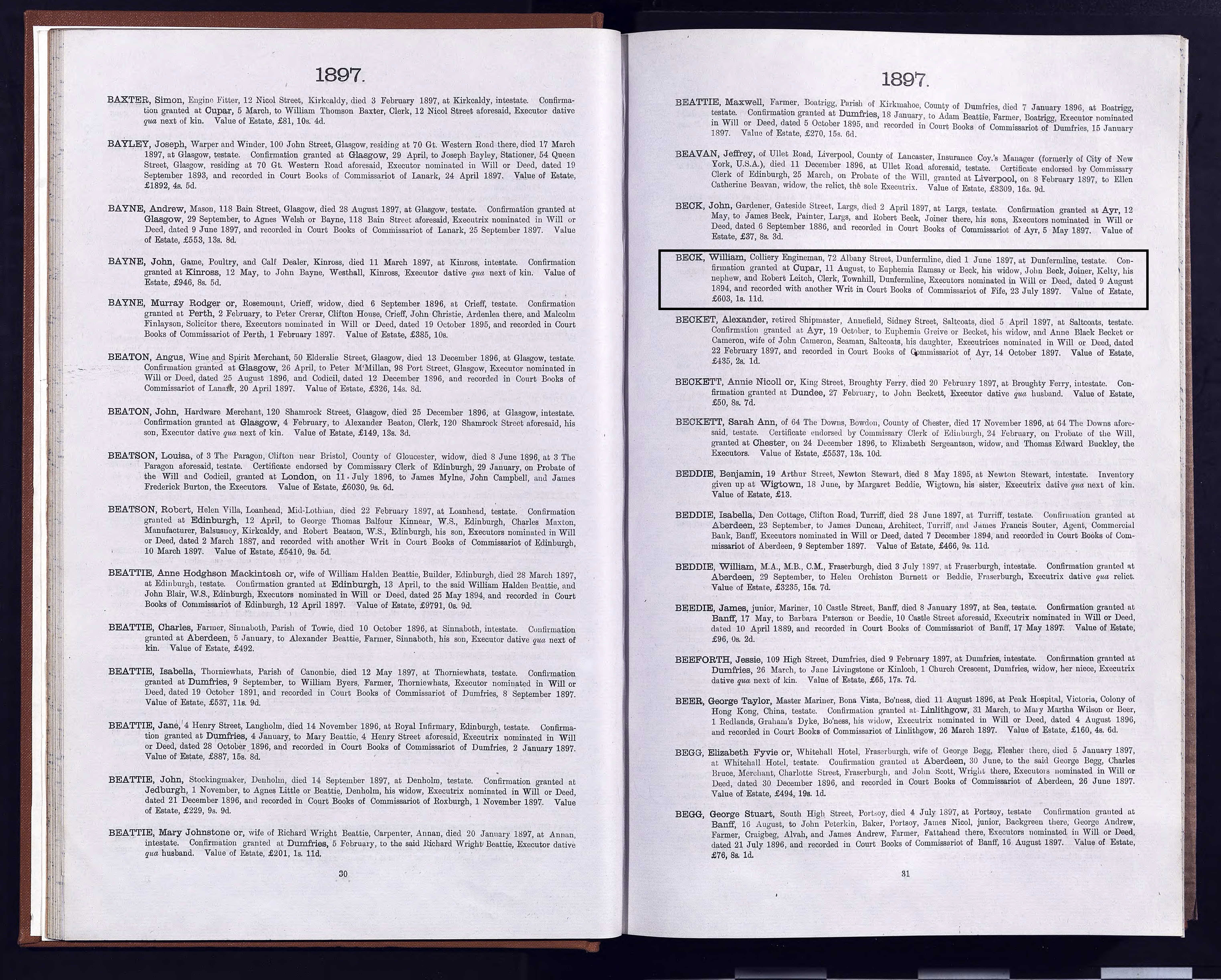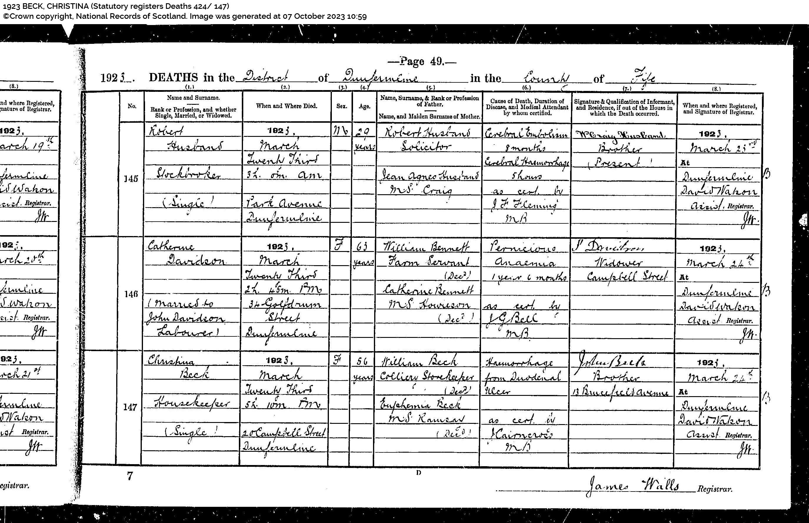 | 140 | SP | STAT | DEA | 1923 | R132.jpg | 1923-03-23 DEA Christina Beck – Dunfermline dau of William Beck [[R132]] | LOCAL | ONLINE |