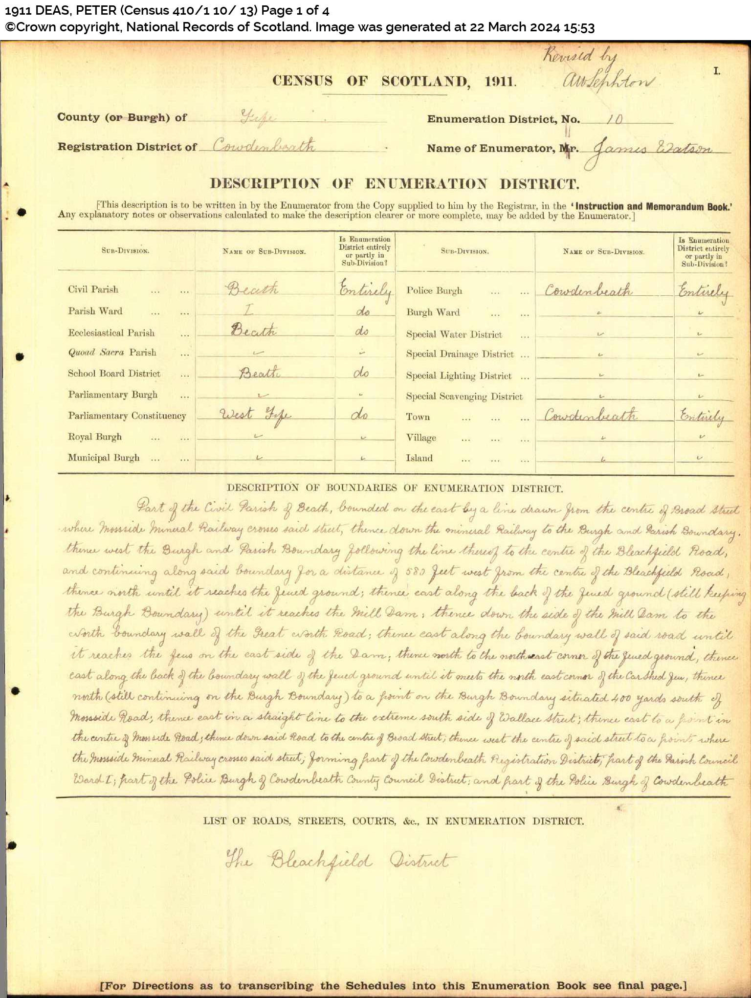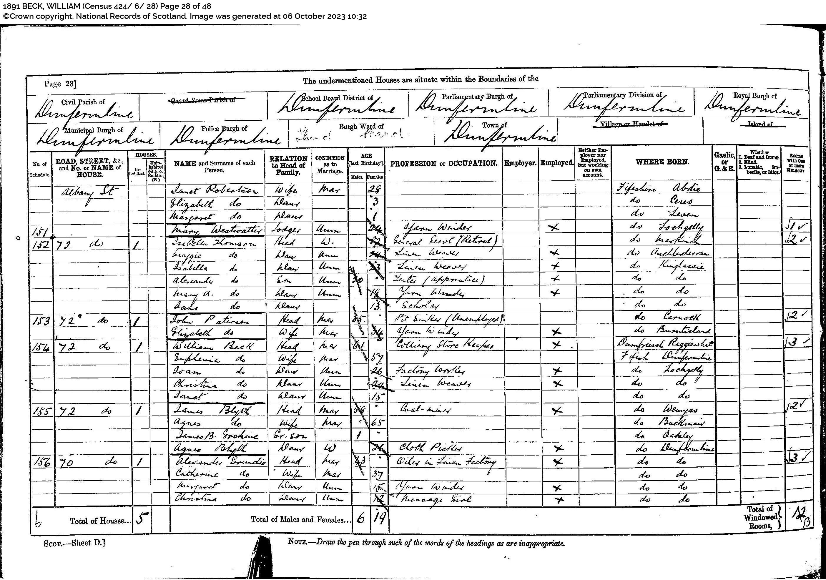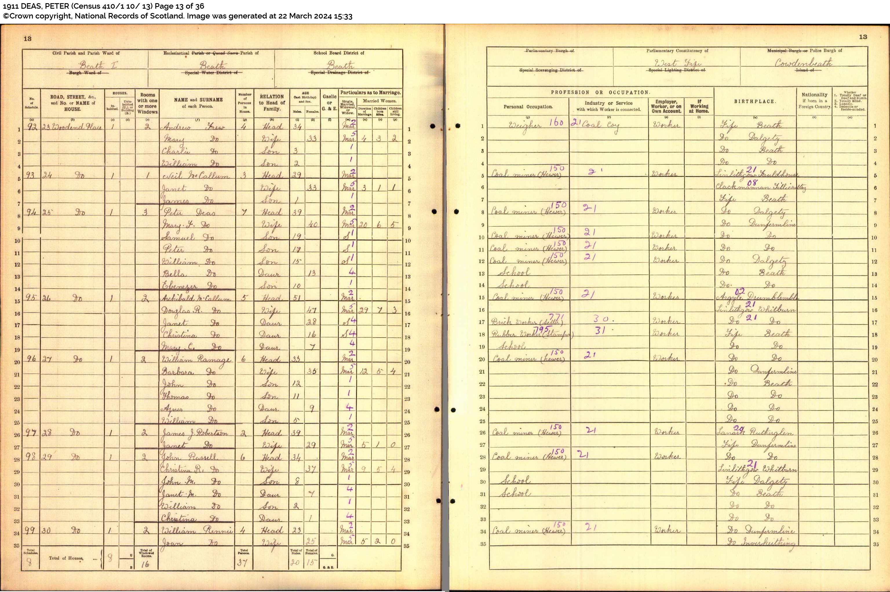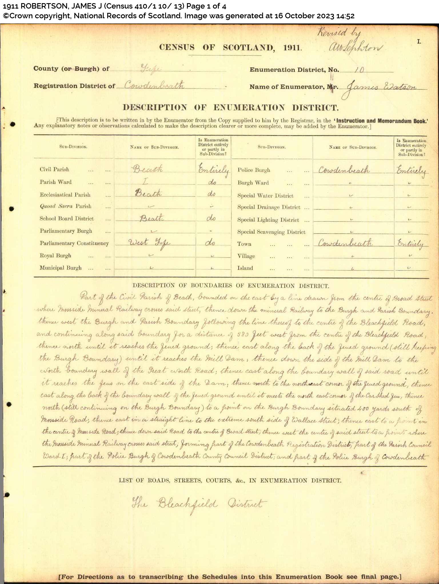 | 189 | SP | STAT | CEN | 1921 | R171-h1.jpg | 1921-06-19 CEN James John Robertson + Janet Fowler Ramsay – 28 Woodend Place, Beath, Fife, Scotland [[R171-h1]] | LOCAL | ONLINE |