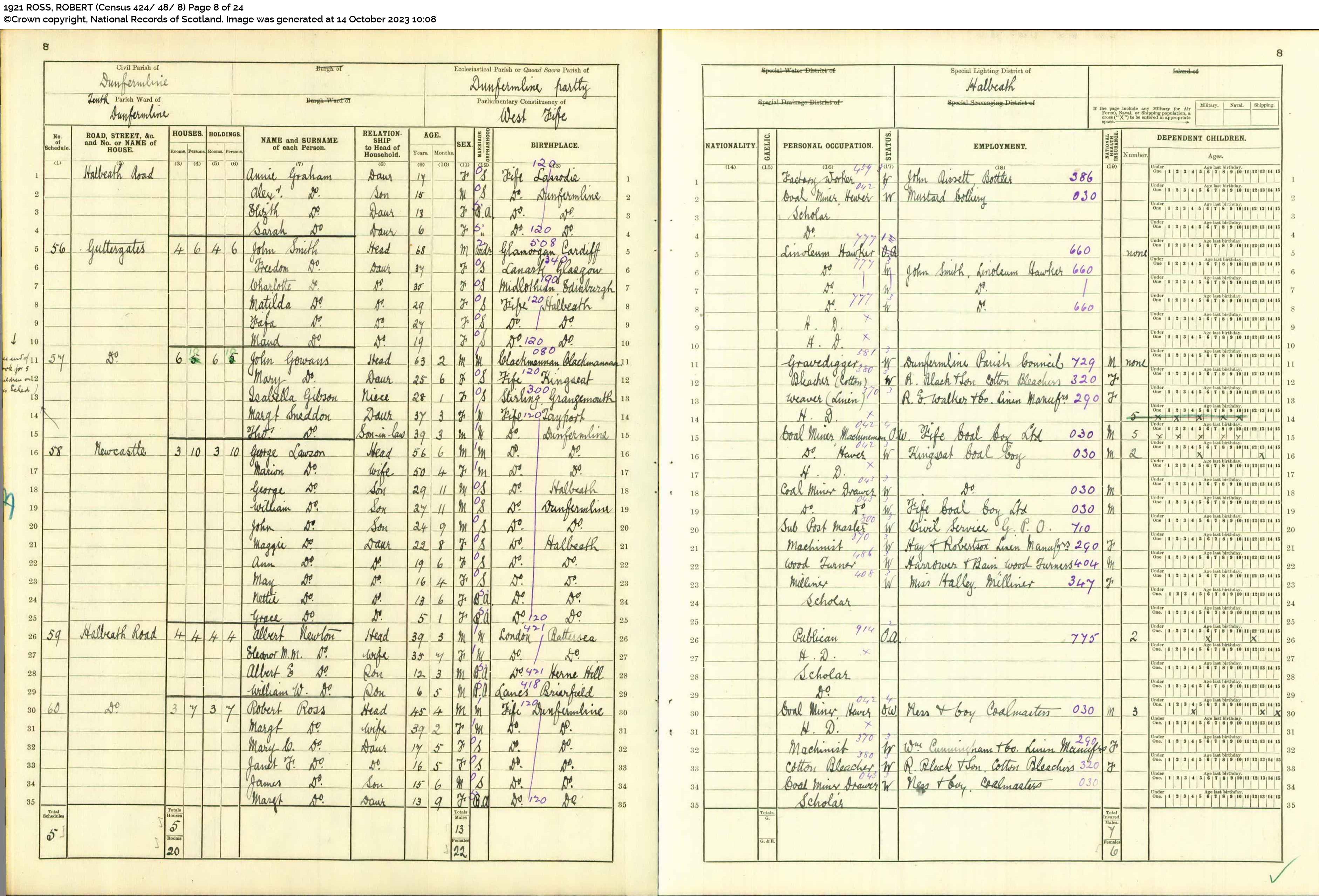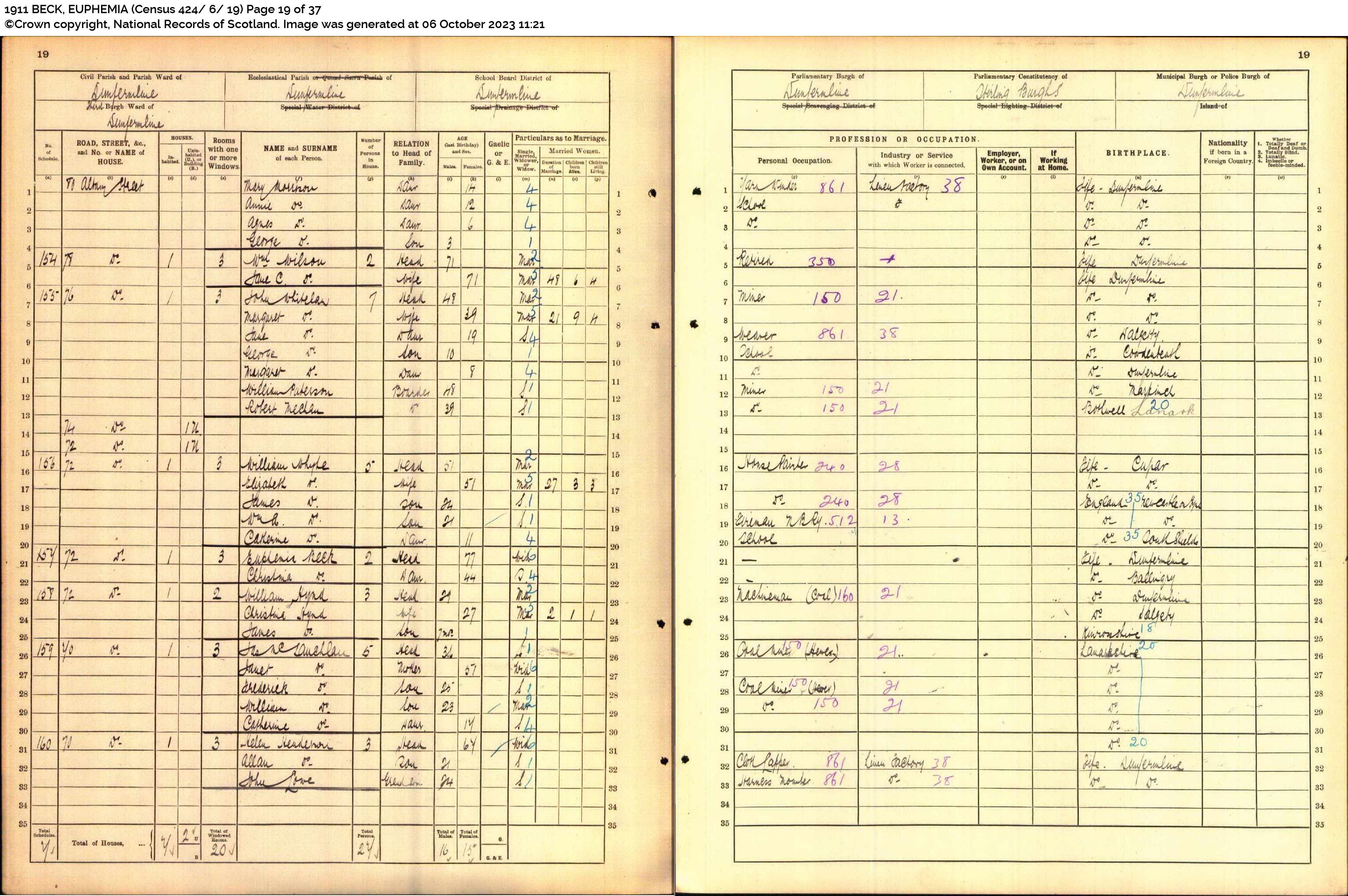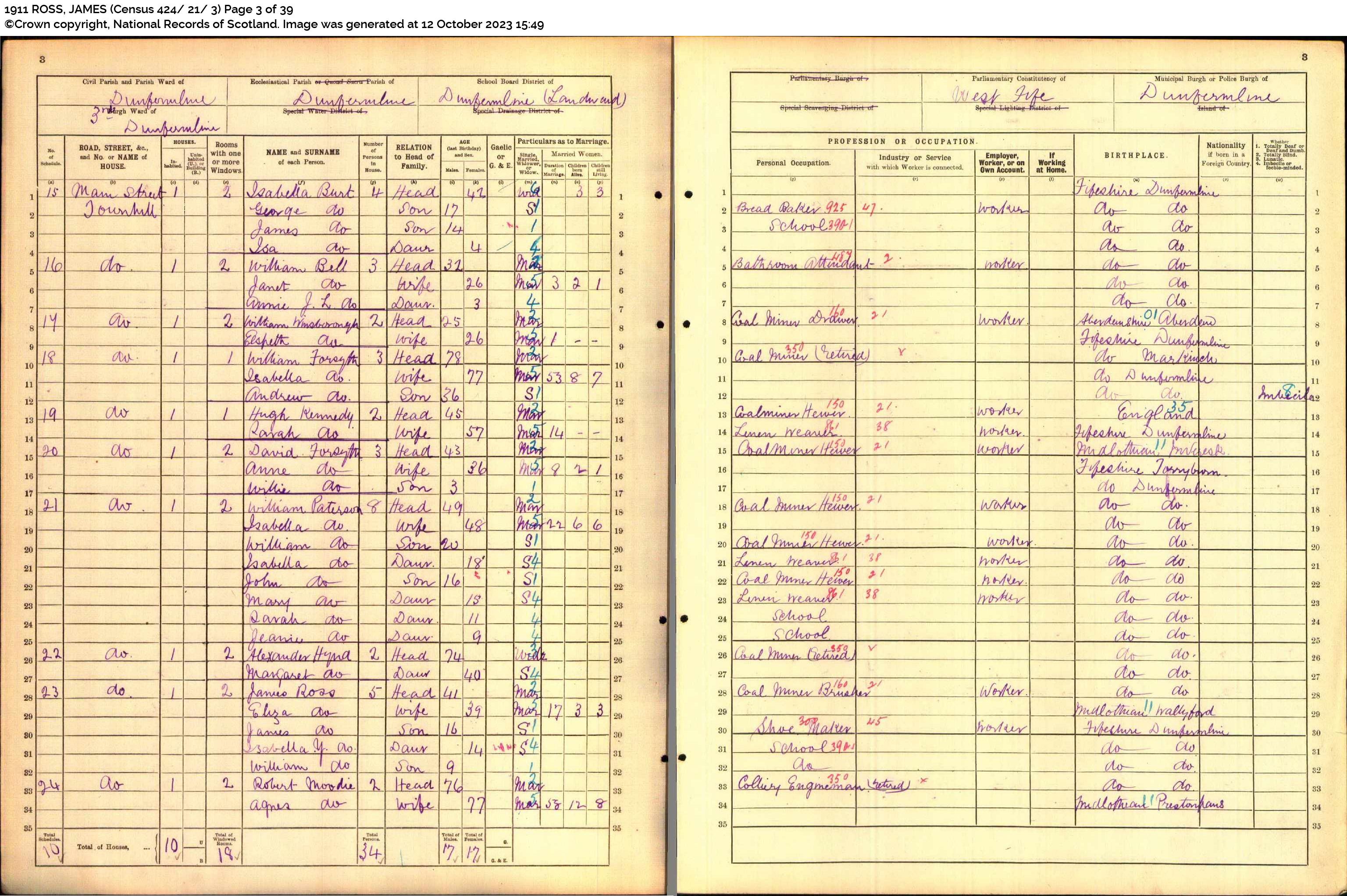 | 351 | ANC | STAT | CEN | 1921 | R319.jpg | 1921-06-19 CEN David Lawson + Isabella Fowler – 24 Cemetery Road, Dunfemline [[R319]] | LOCAL | ONLINE |