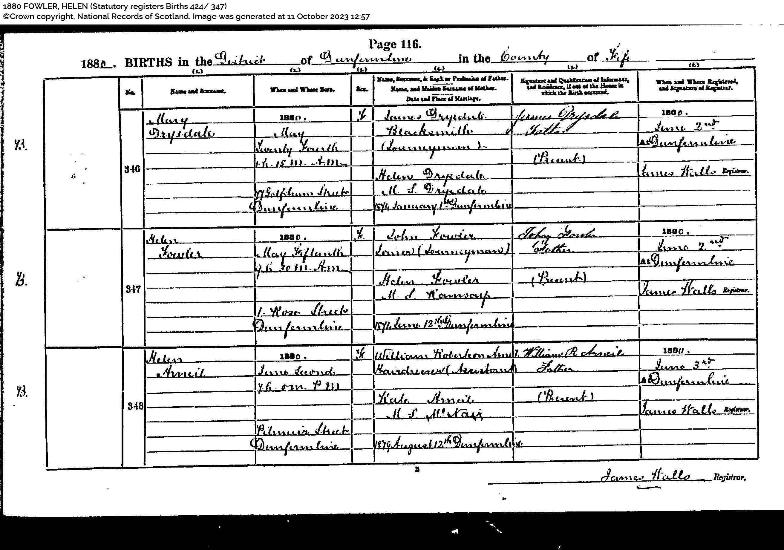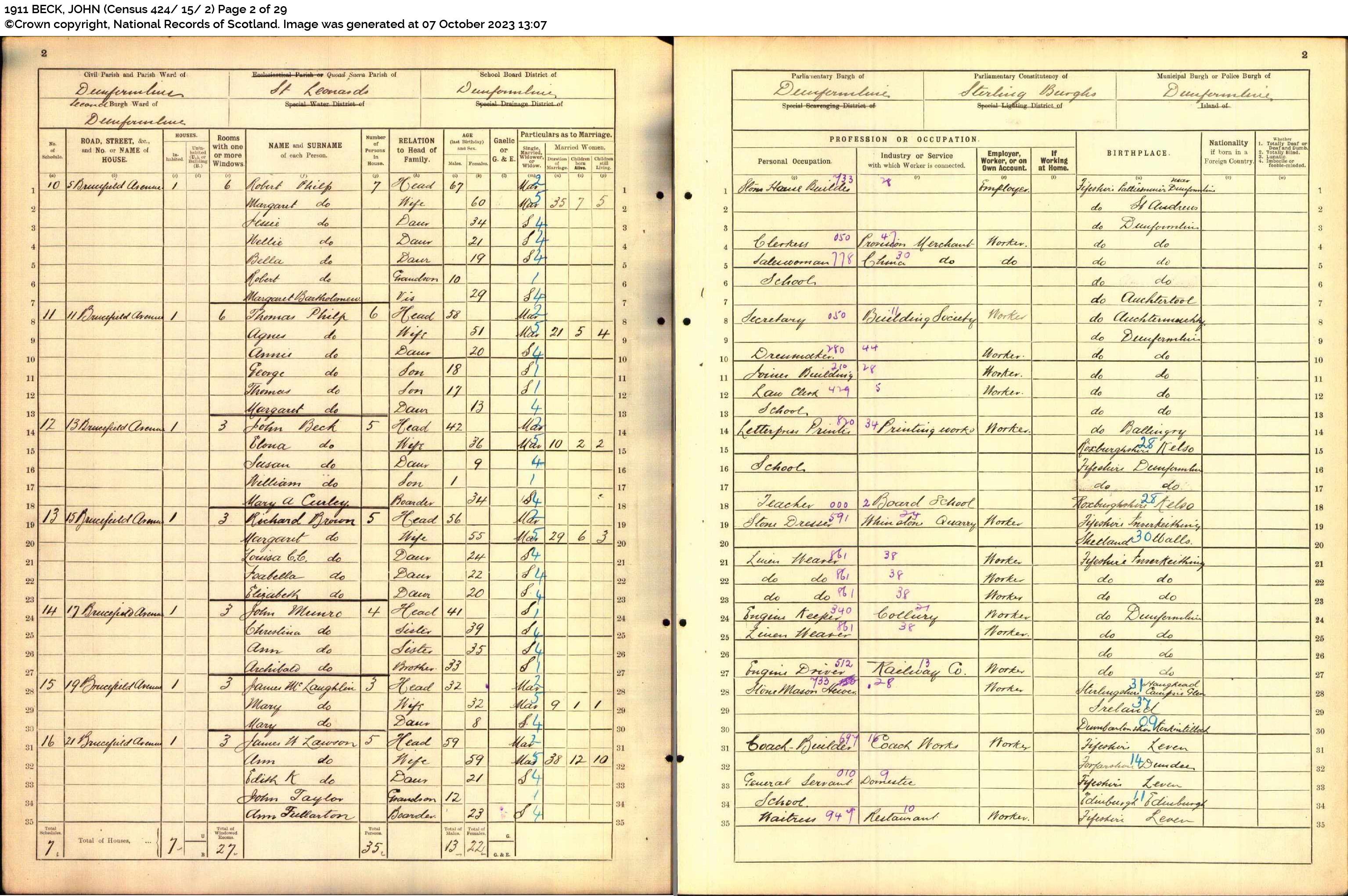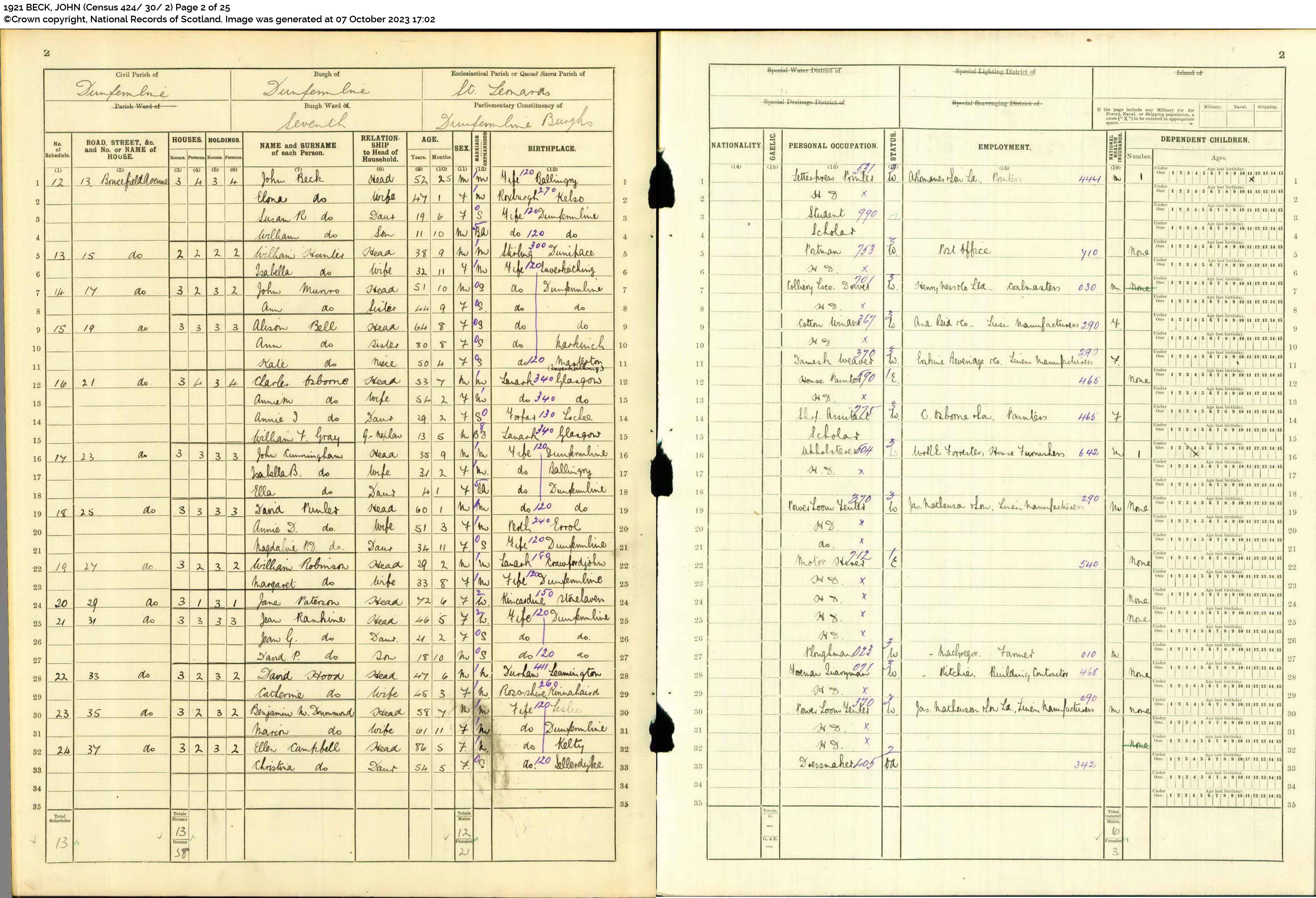 | 351 | ANC | STAT | CEN | 1921 | R319.jpg | 1921-06-19 CEN David Lawson + Isabella Fowler – 24 Cemetery Road, Dunfemline [[R319]] | LOCAL | ONLINE |