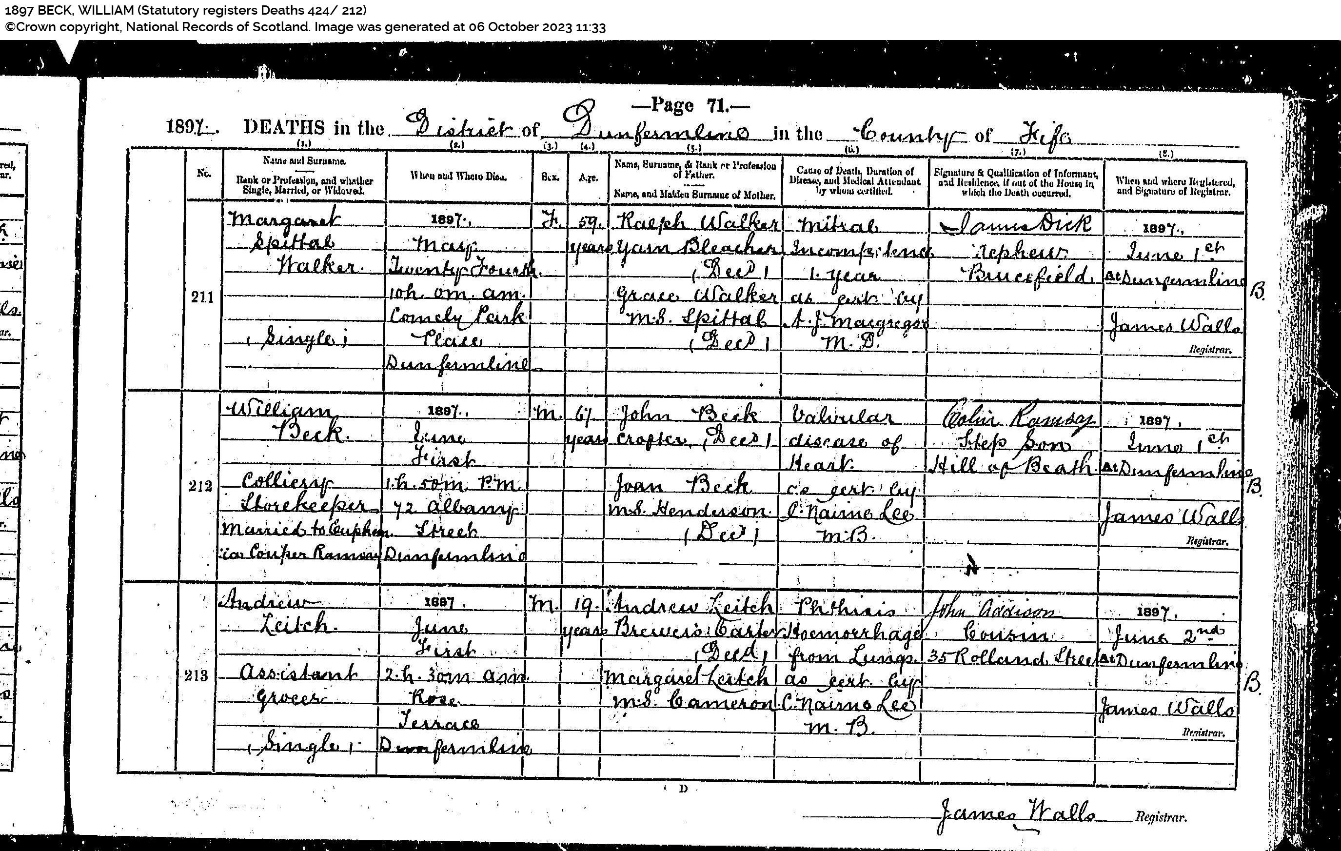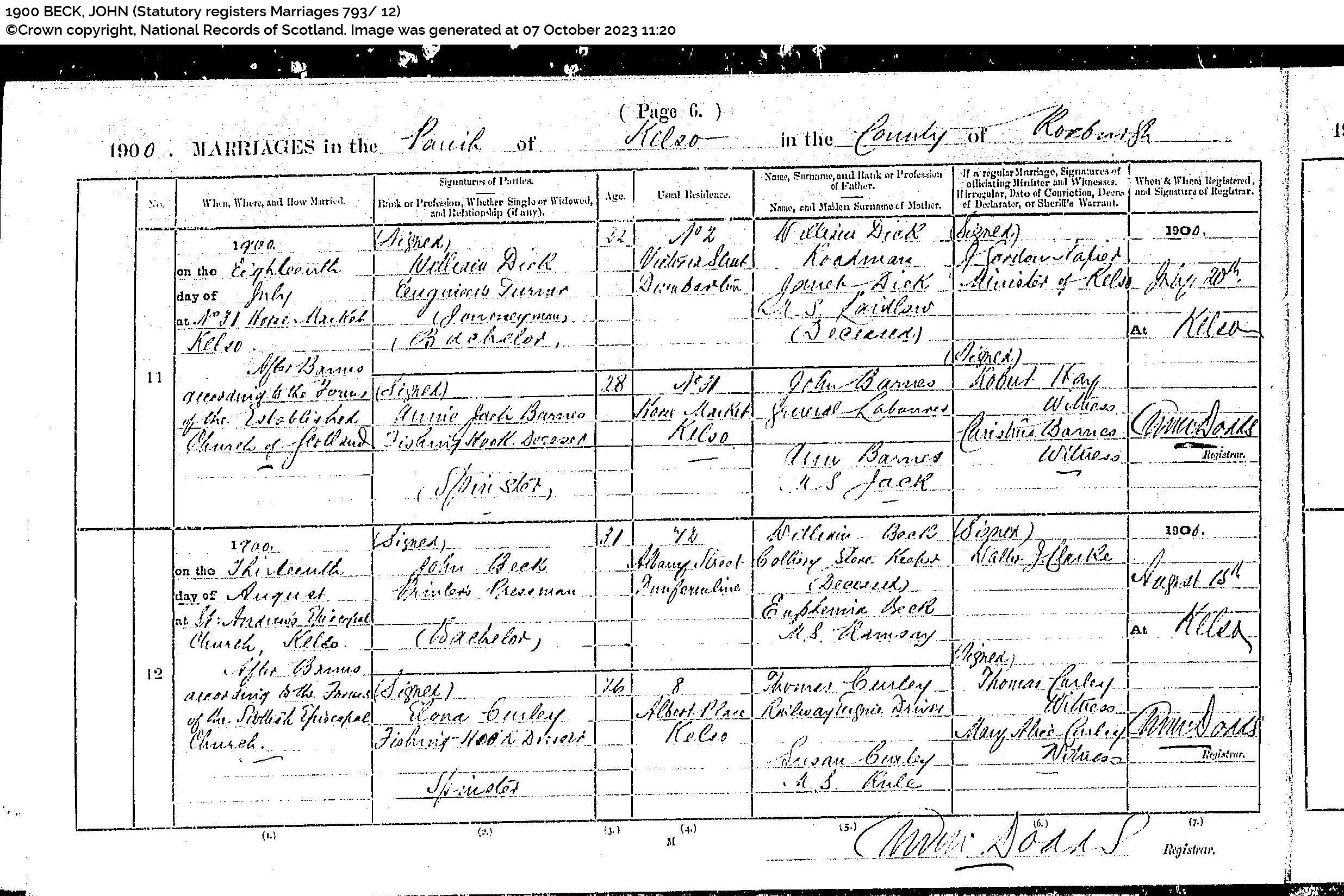 | 6 | SP | STAT | MAR | 1861 | R006.jpg | 1861-06-28 MAR William Beck + Euphemia Couper Ramsay, Auchterderran [[R006]], | LOCAL | ONLINE |
