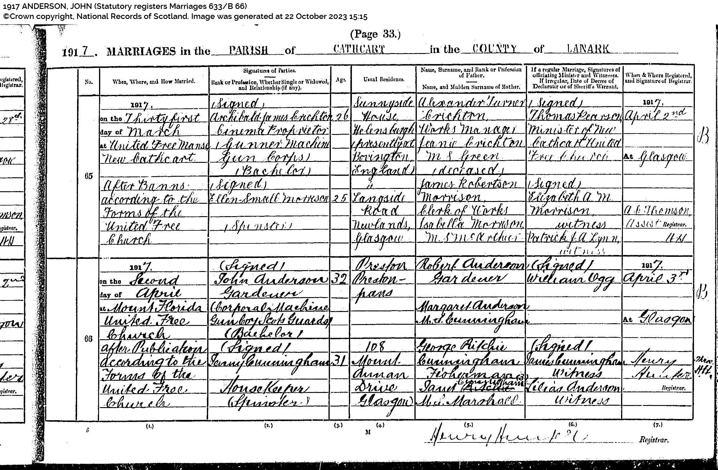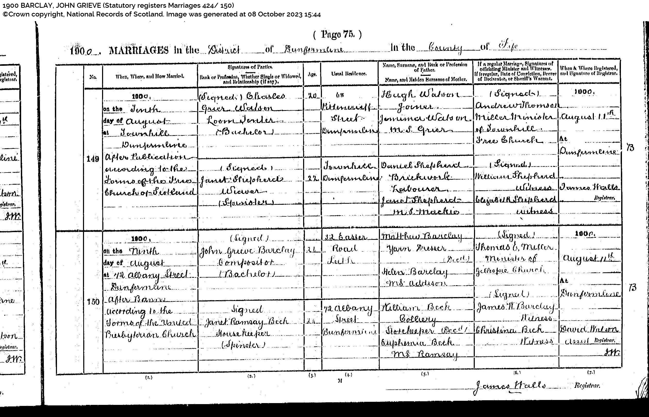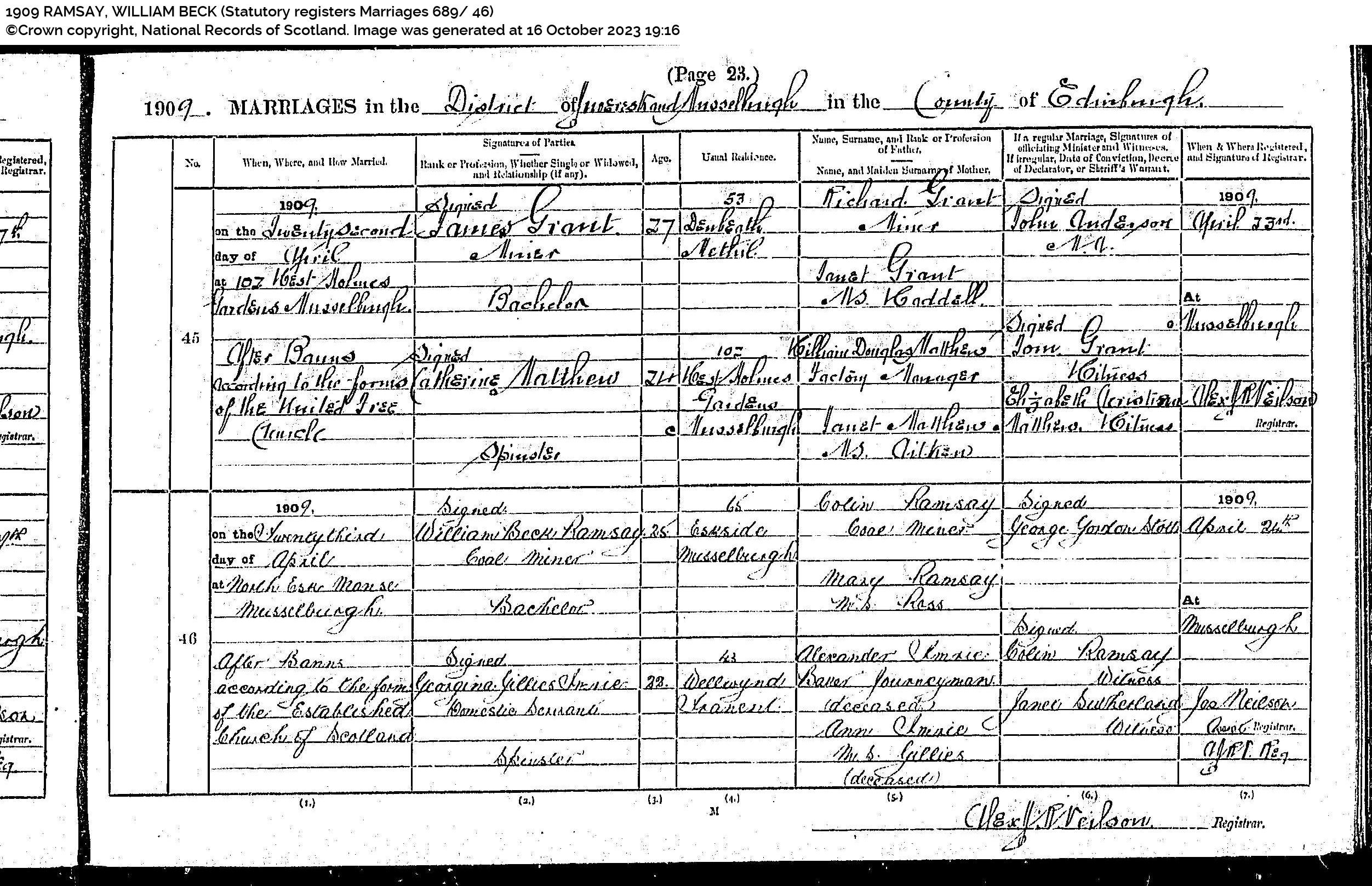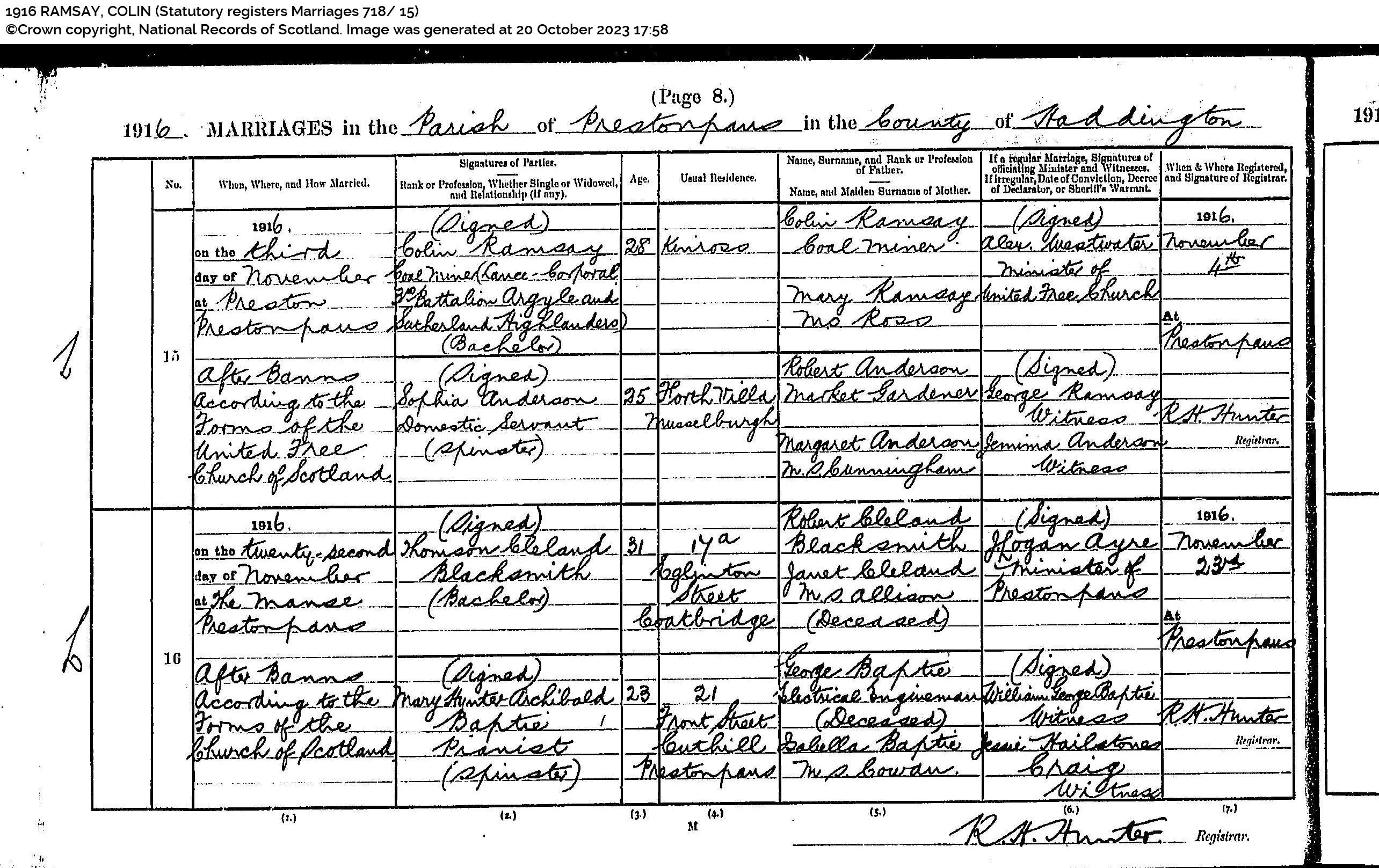 | 202 | SP | STAT | MAR | 1923 | R182.jpg | 1923-07-27 MAR Mary Ramsay + Alexander Brash – Musselburgh [[R182]] | LOCAL | ONLINE |