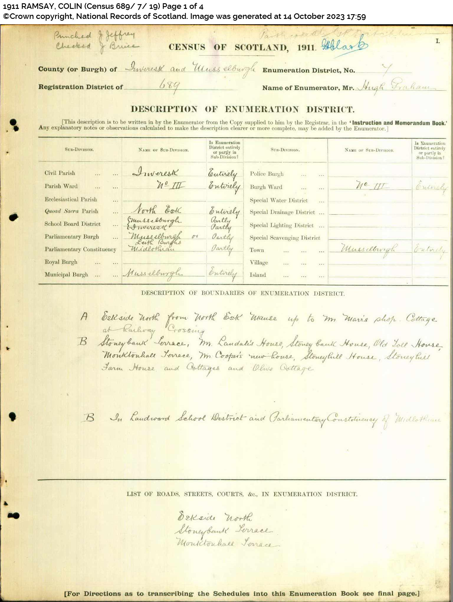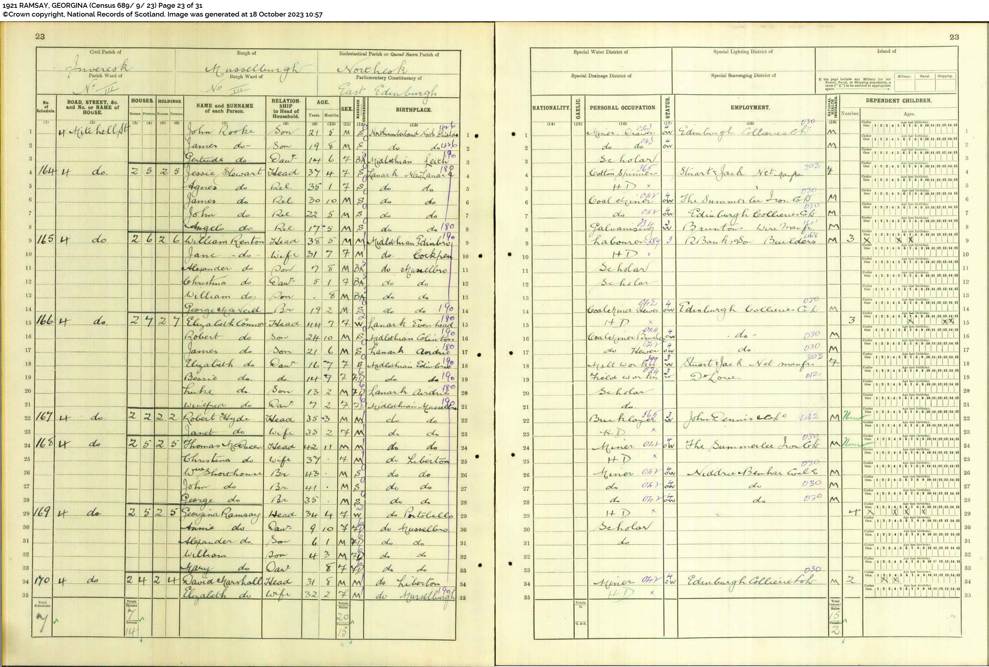 | 196 | SP | STAT | CEN | 1921 | R175.jpg | 1921-06-19 CEN Georgina Ramsay or Imrie – 4 Mitchell Street, Musselburgh, Midlothian, Scotland [[R175]] | LOCAL | ONLINE |
