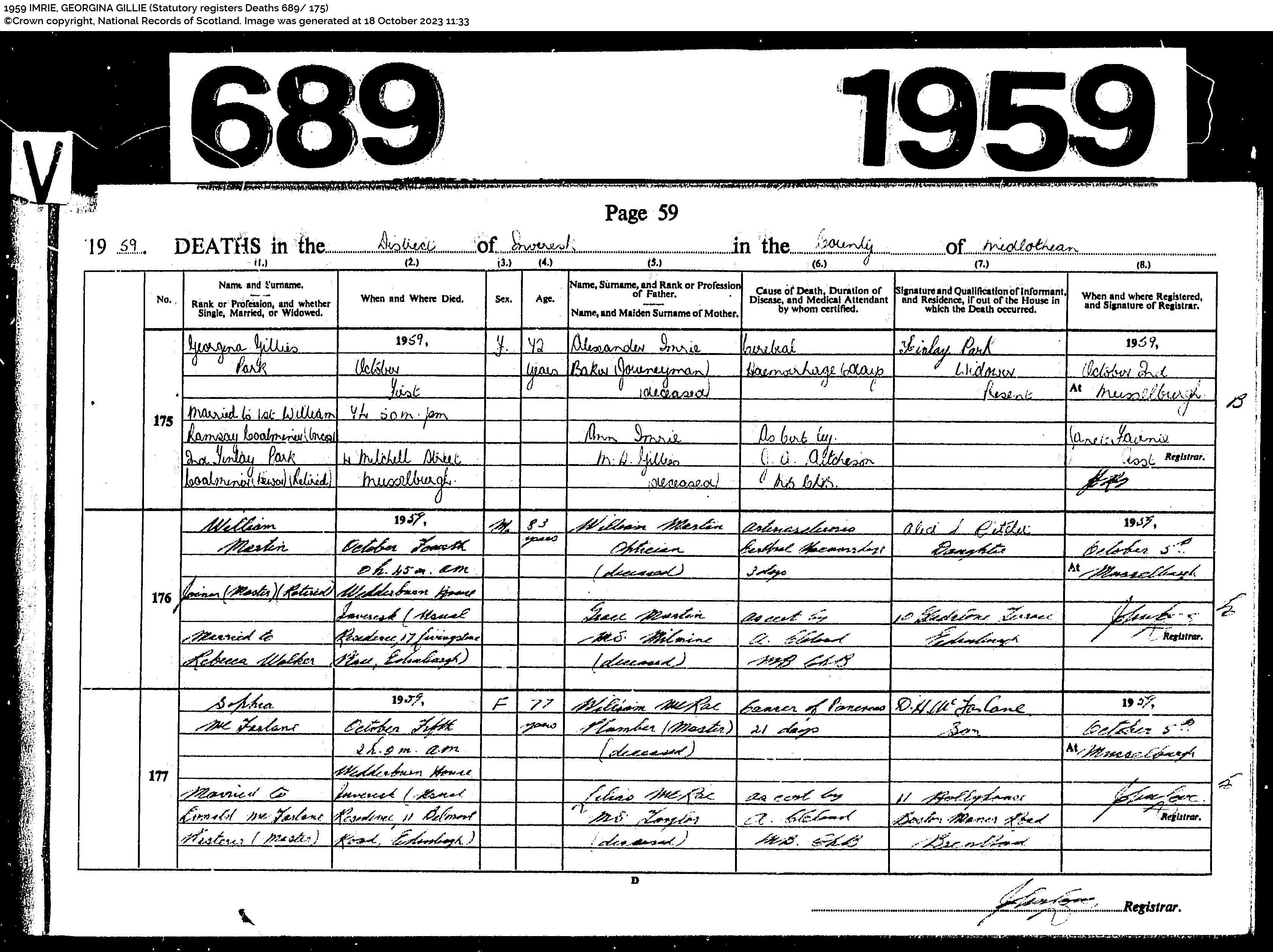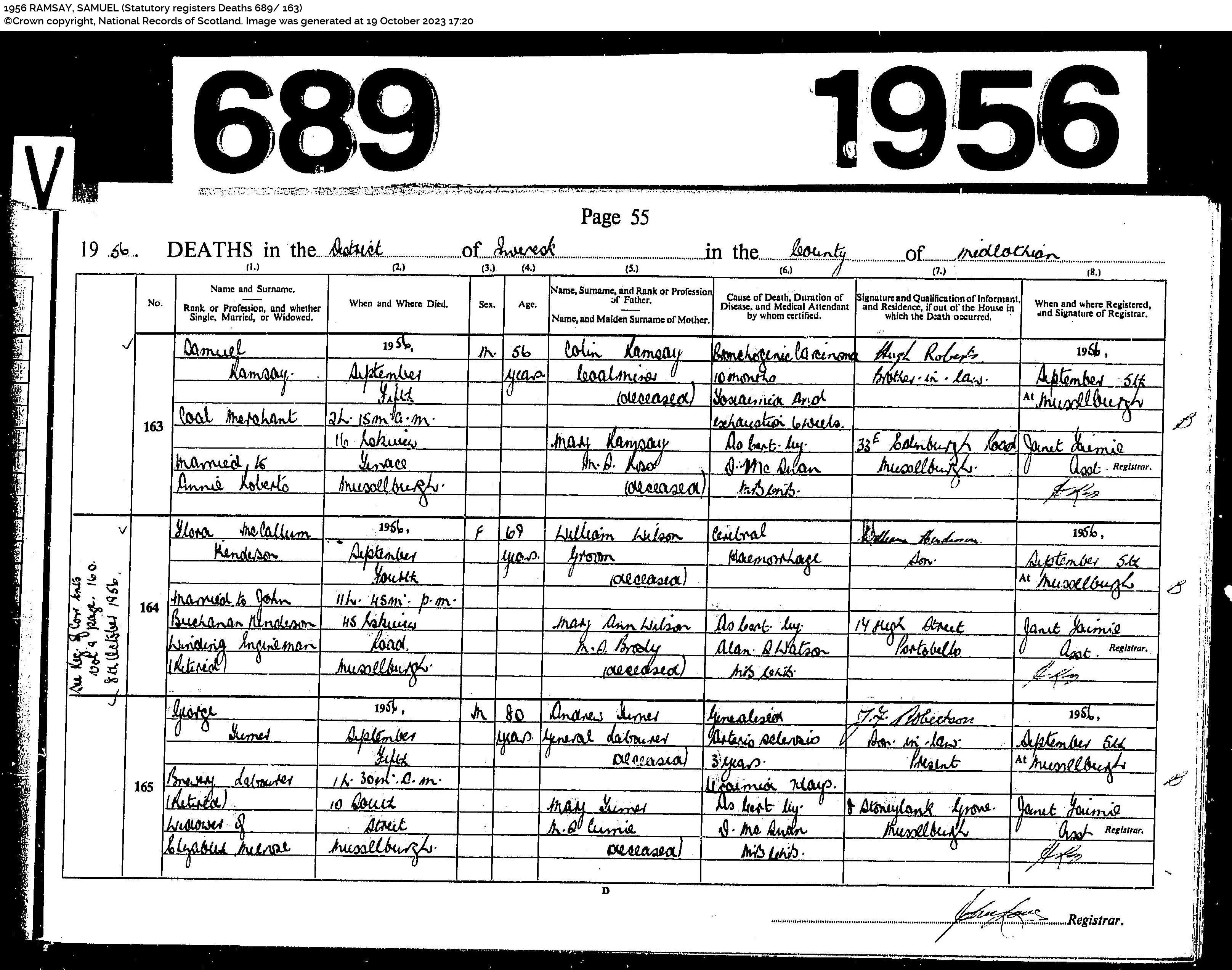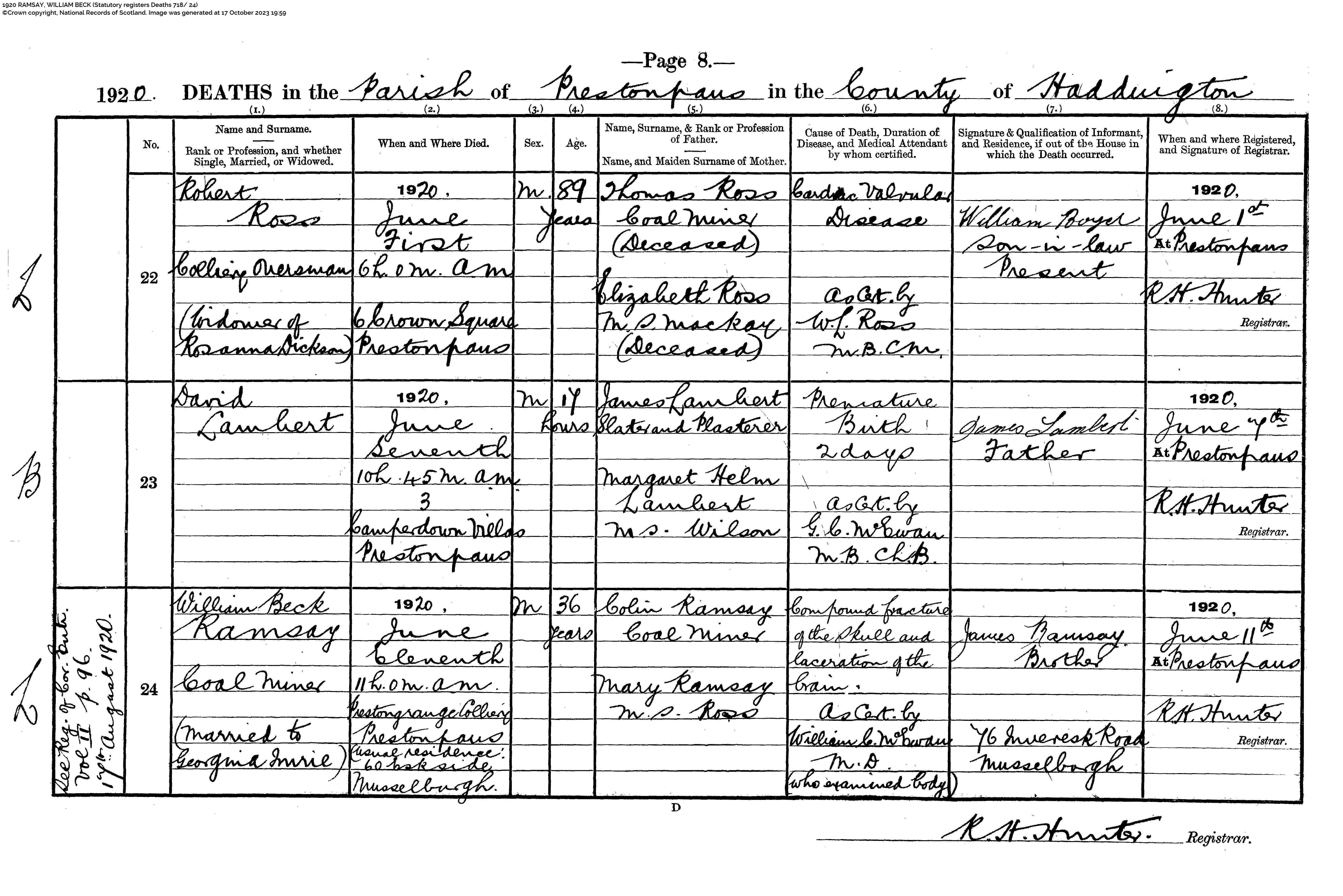 | 219 | SP | RCE | DEA | 1956 | R201.jpg | 1956-10-07 cause of death of George Ramsay Musselburgh [[R201]] | LOCAL | n/a |