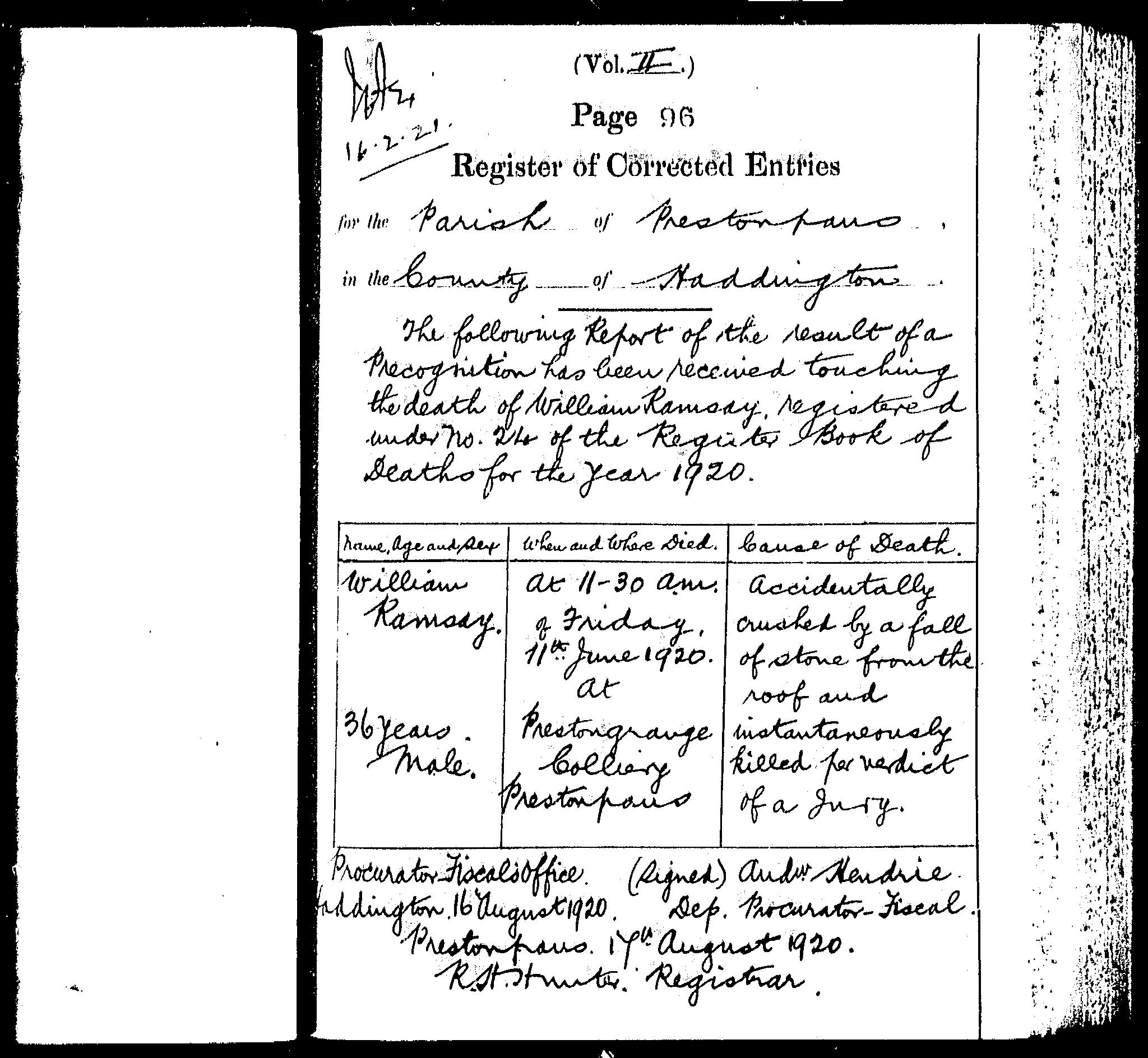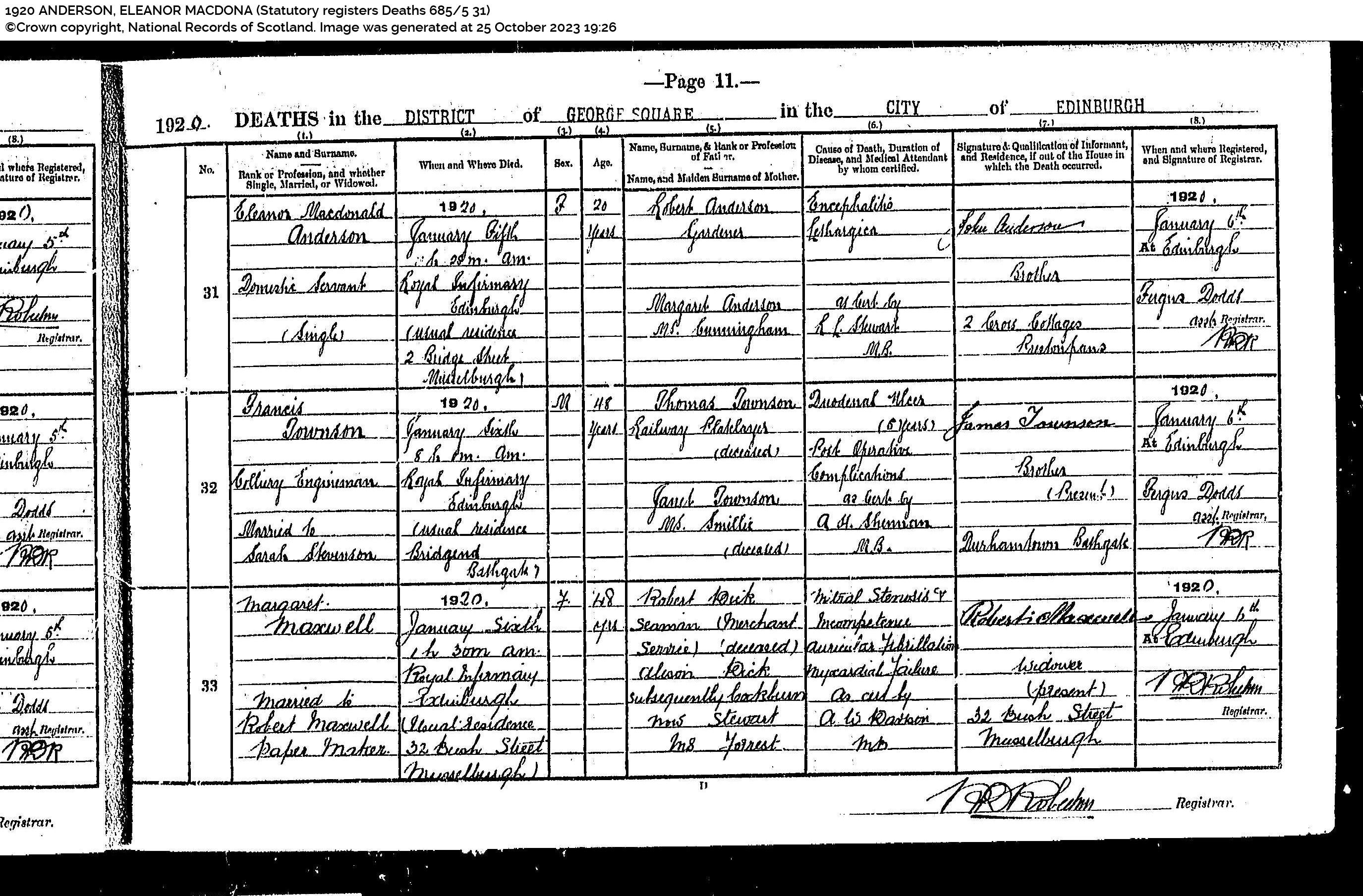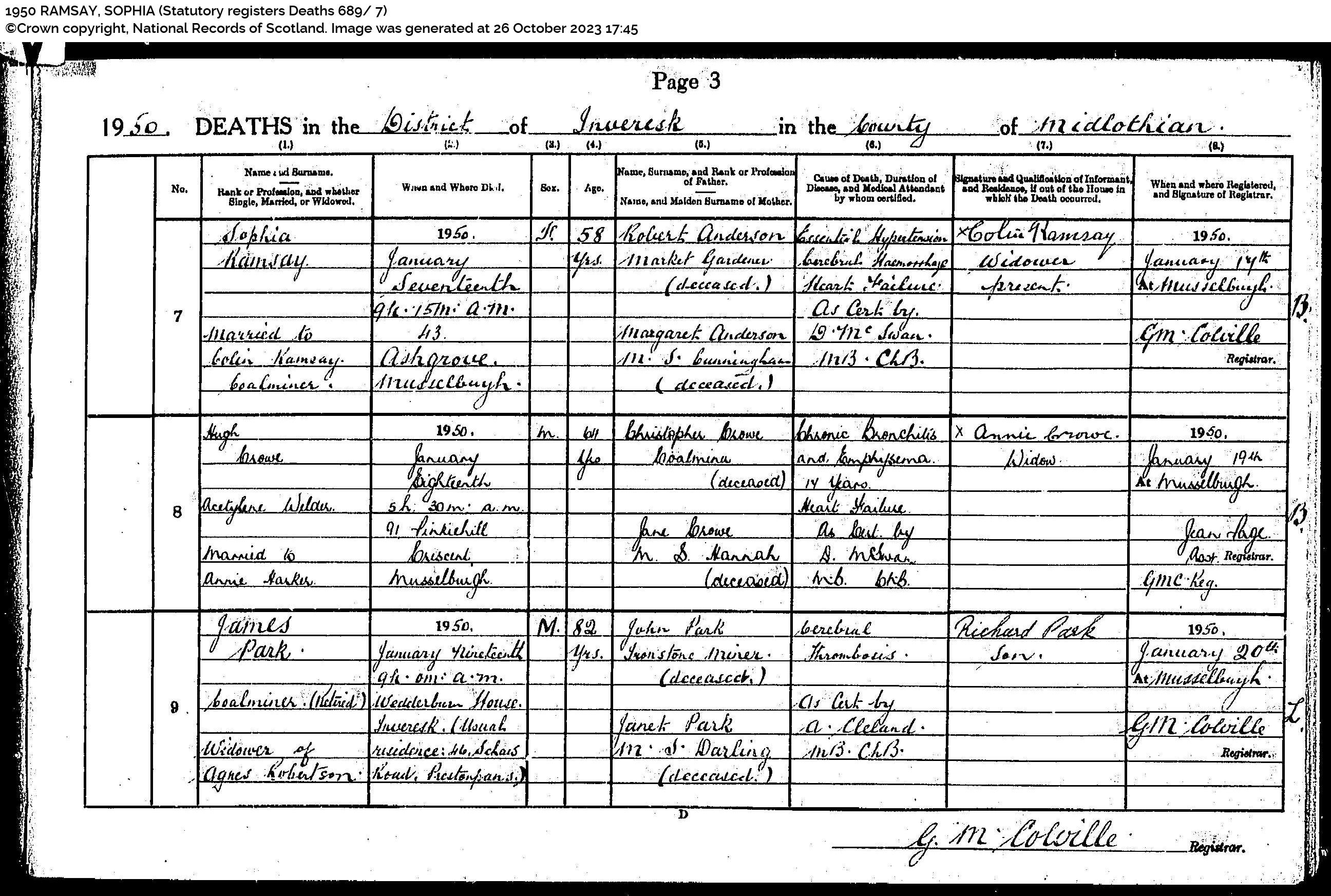| 219 | SP | RCE | DEA | 1956 | R201.jpg | 1956-10-07 cause of death of George Ramsay Musselburgh [[R201]] | LOCAL | n/a |