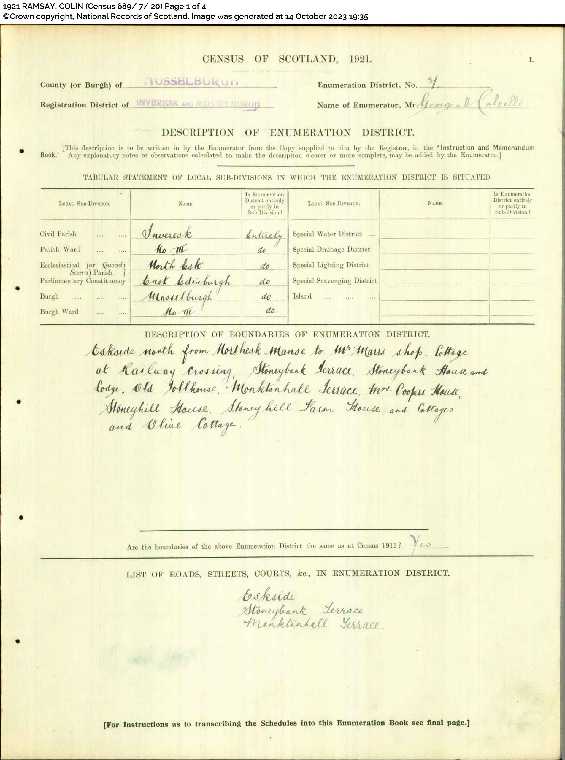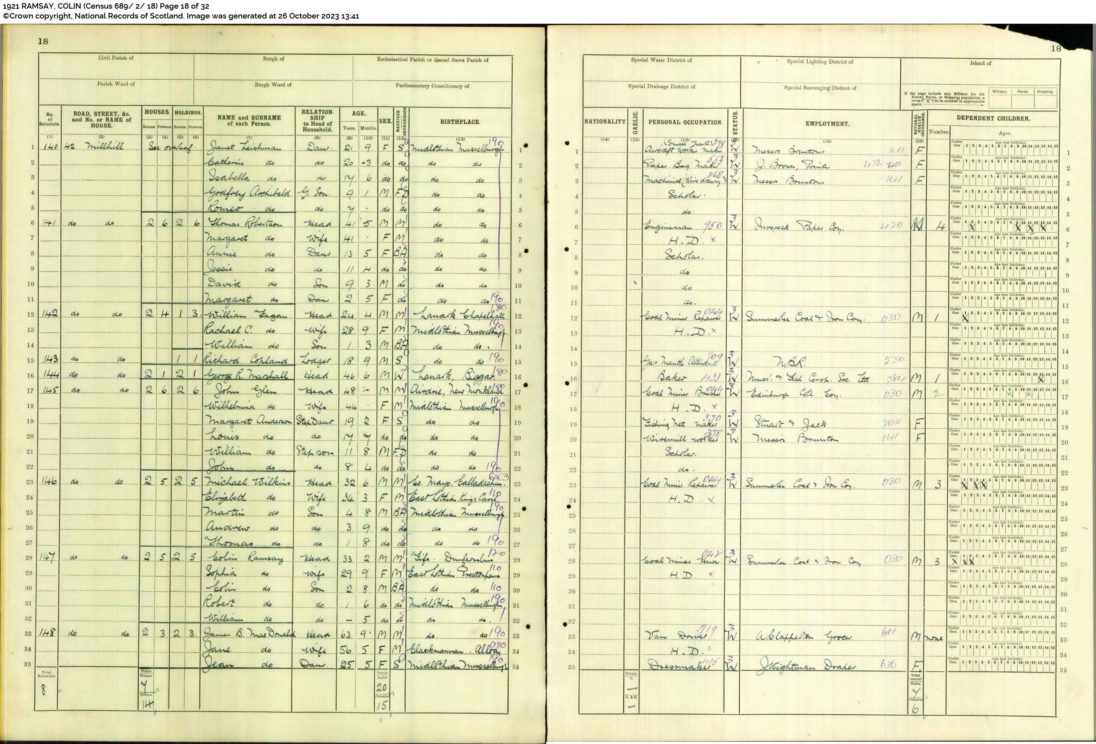 | 264 | SP | STAT | CEN | 1921 | R245.jpg | 1921-06-19 CEN Colin Ramsay + Sophia Anderson – 42 Millhill, Musselburgh [[R245]] | LOCAL | ONLINE |