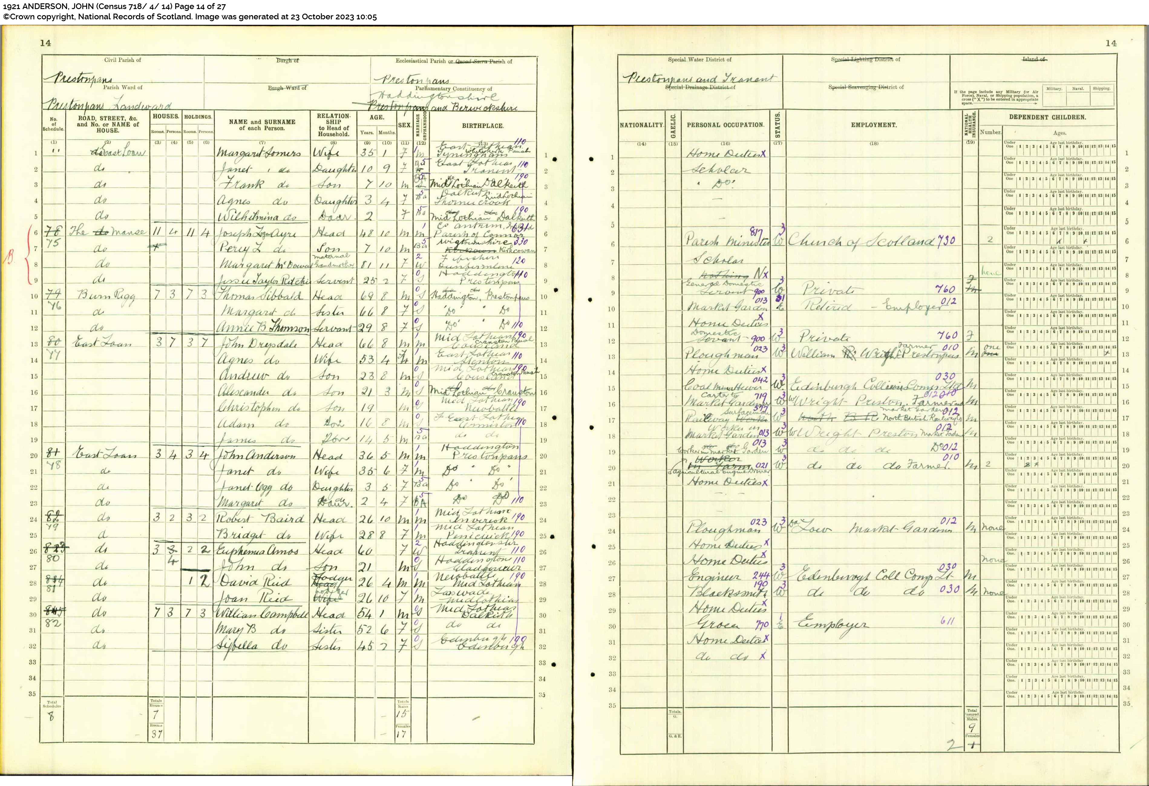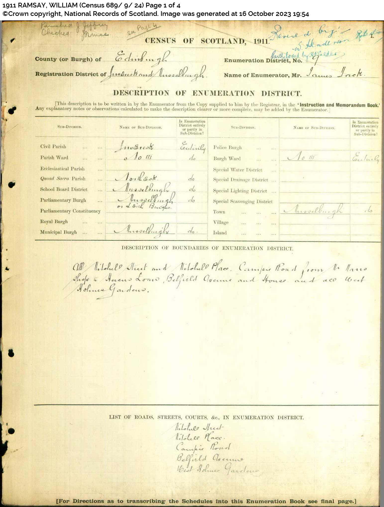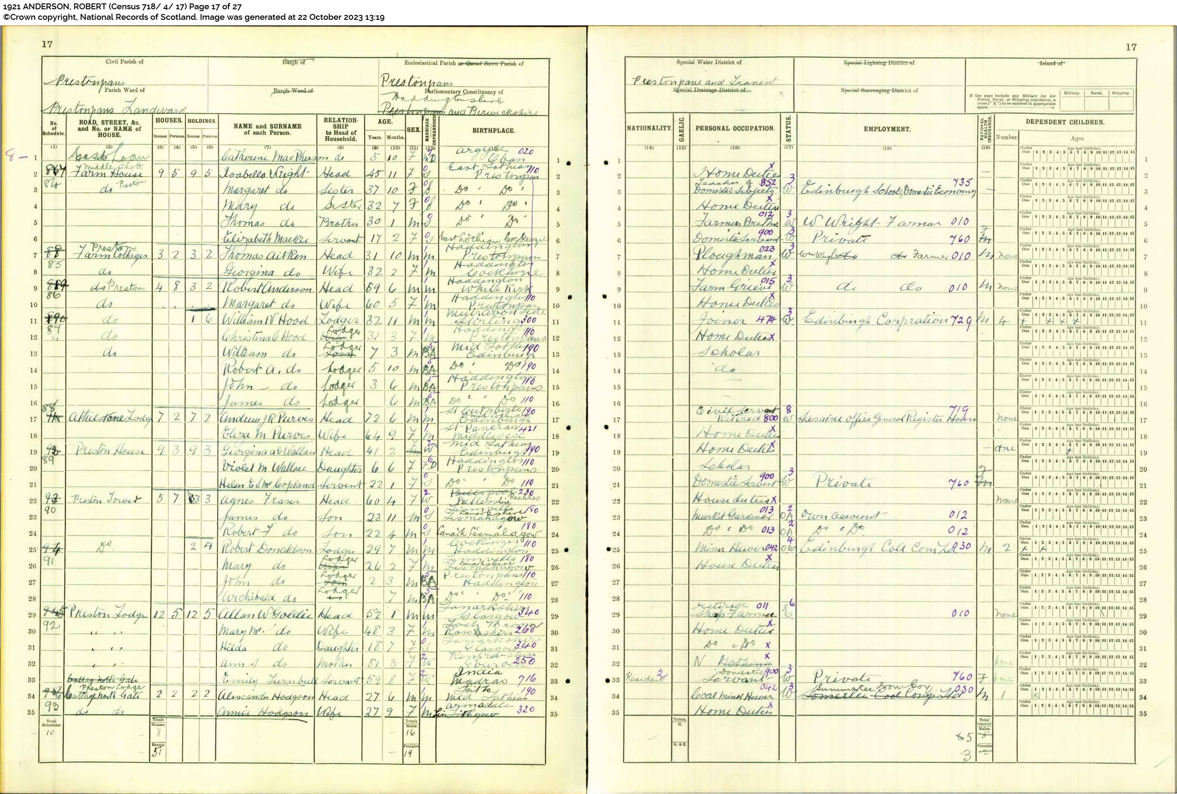 | 209 | SP | STAT | CEN | 1921 | R189.jpg | 1921-06-19 CEN David Roberts + Janet Kirkwood Wilson – 15 High Street, Musselburgh [[R189]] | LOCAL | ONLINE |