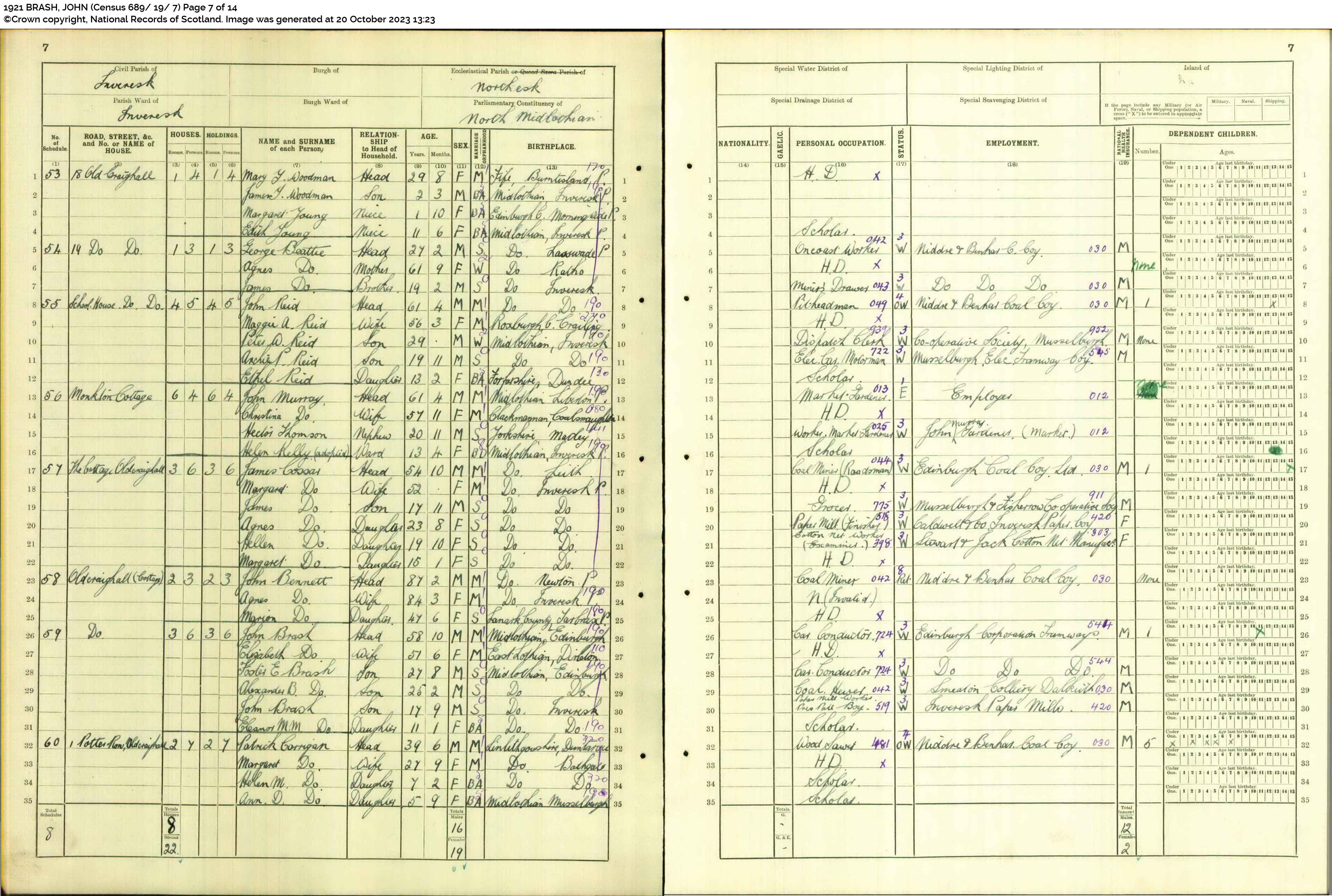 | 205 | SP | STAT | CEN | 1921 | R186.jpg | 1921-06-19 CEN John Brash + Elizabeth Bryson – Old Craighall Cottage, Inveresk, Musselburgh, Midlothian, Scotland [[R186]] | LOCAL | ONLINE |