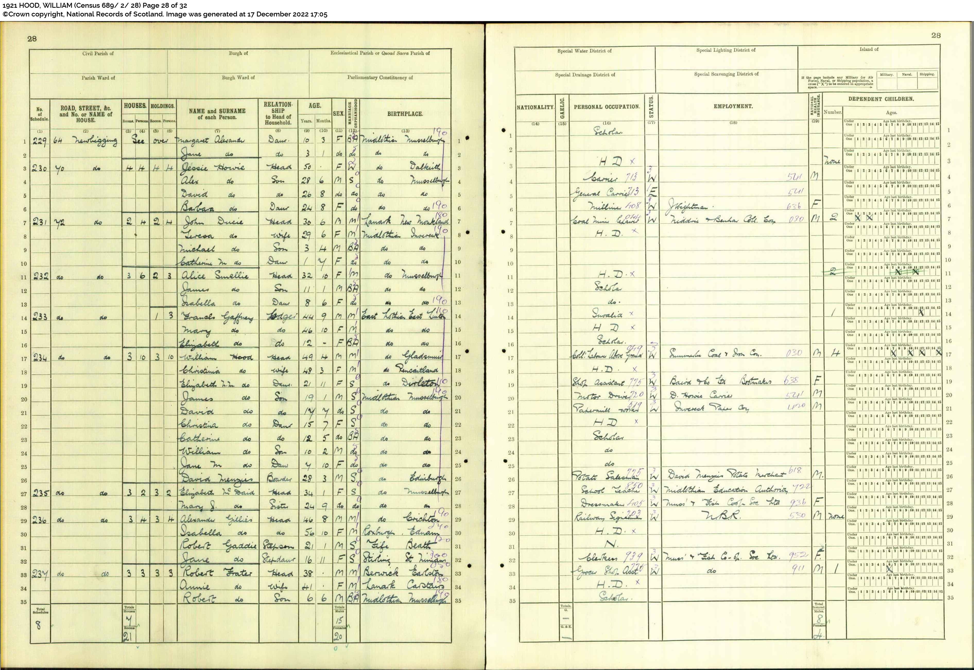 | 315 | SP | STAT | DEA | 1921 | R285.jpg | 1921-10-01 DEA Georgina Gillies Park or Ramsay or Imrie – 4 Mitchell Street, Musselburgh, Midlothian, Scotland [[R285]] | LOCAL | ONLINE |