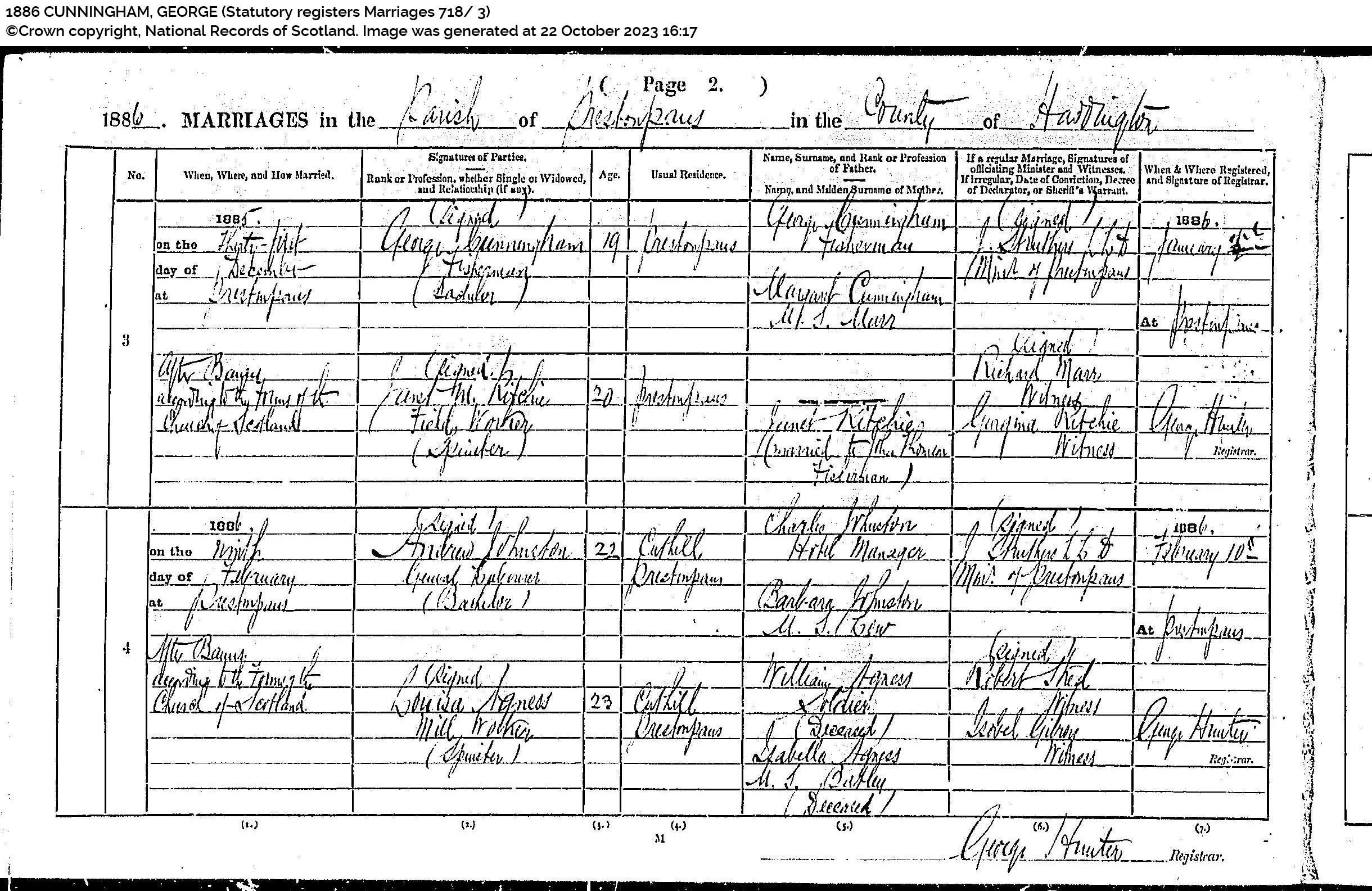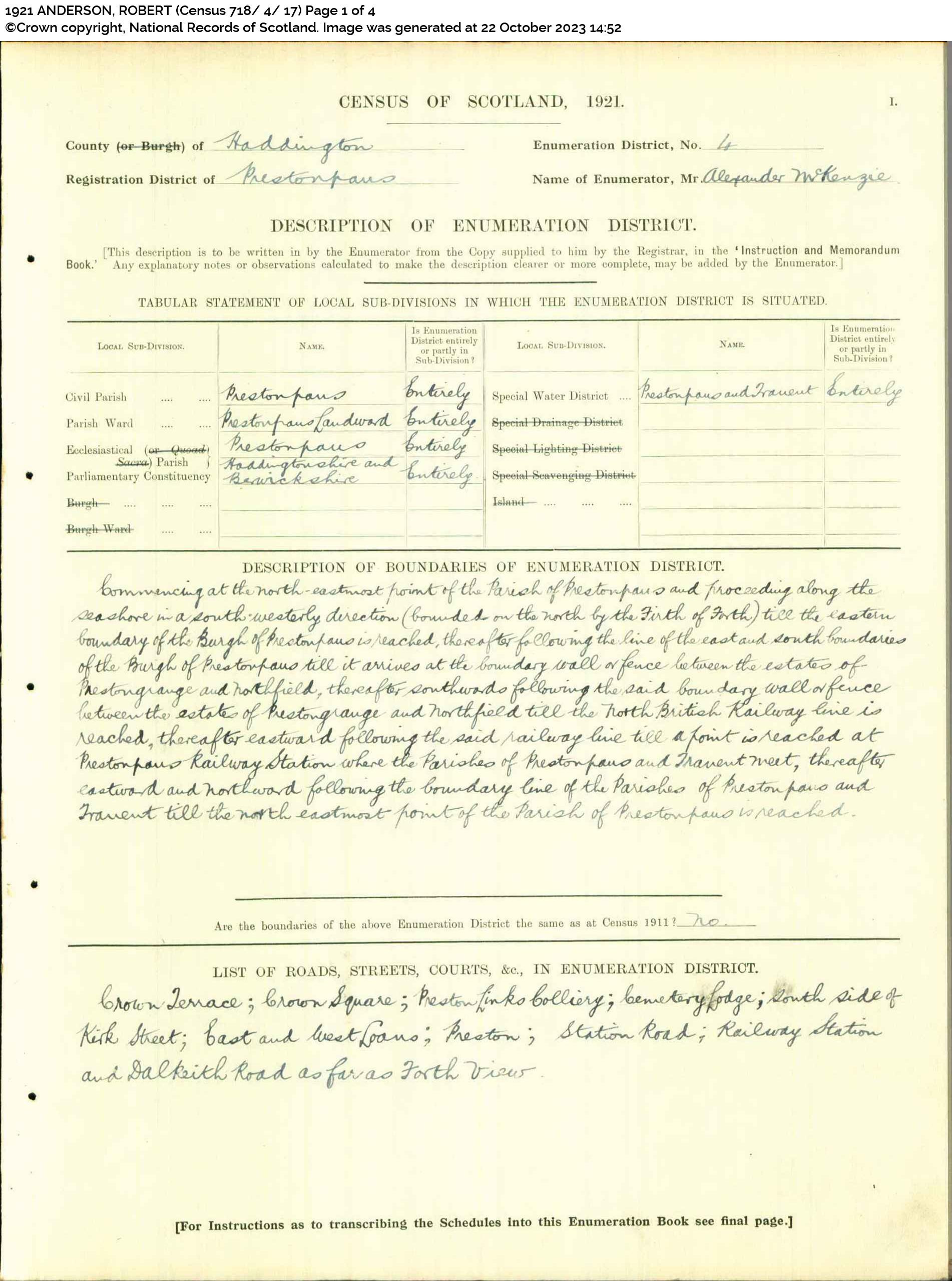 | 247 | SP | STAT | CEN | 1921 | R227.jpg | 1921-06-19 CEN Robert Anderson + Margaret Cunningham – Preston, Prestonpans [[R227] | LOCAL | ONLINE |