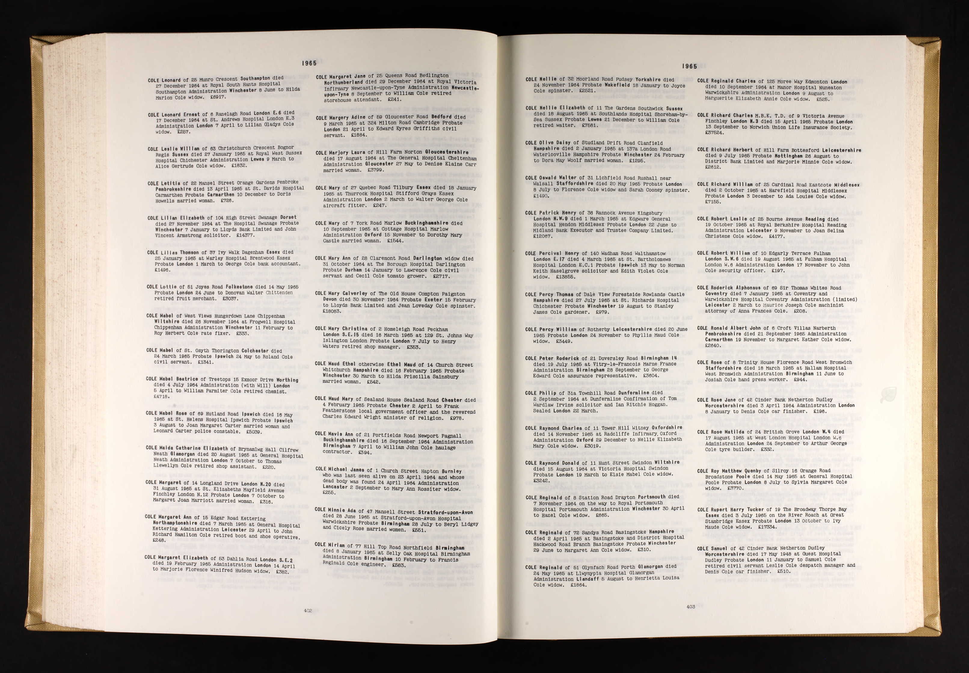 | 251 | ANC | LEG | PRO | 1965 | R230.jpg | 1965-03-01 PRO Lilias Thomson Cole or Anderson – Warley Hospital, Brentford [[R230]] | LOCAL | ONLINE |