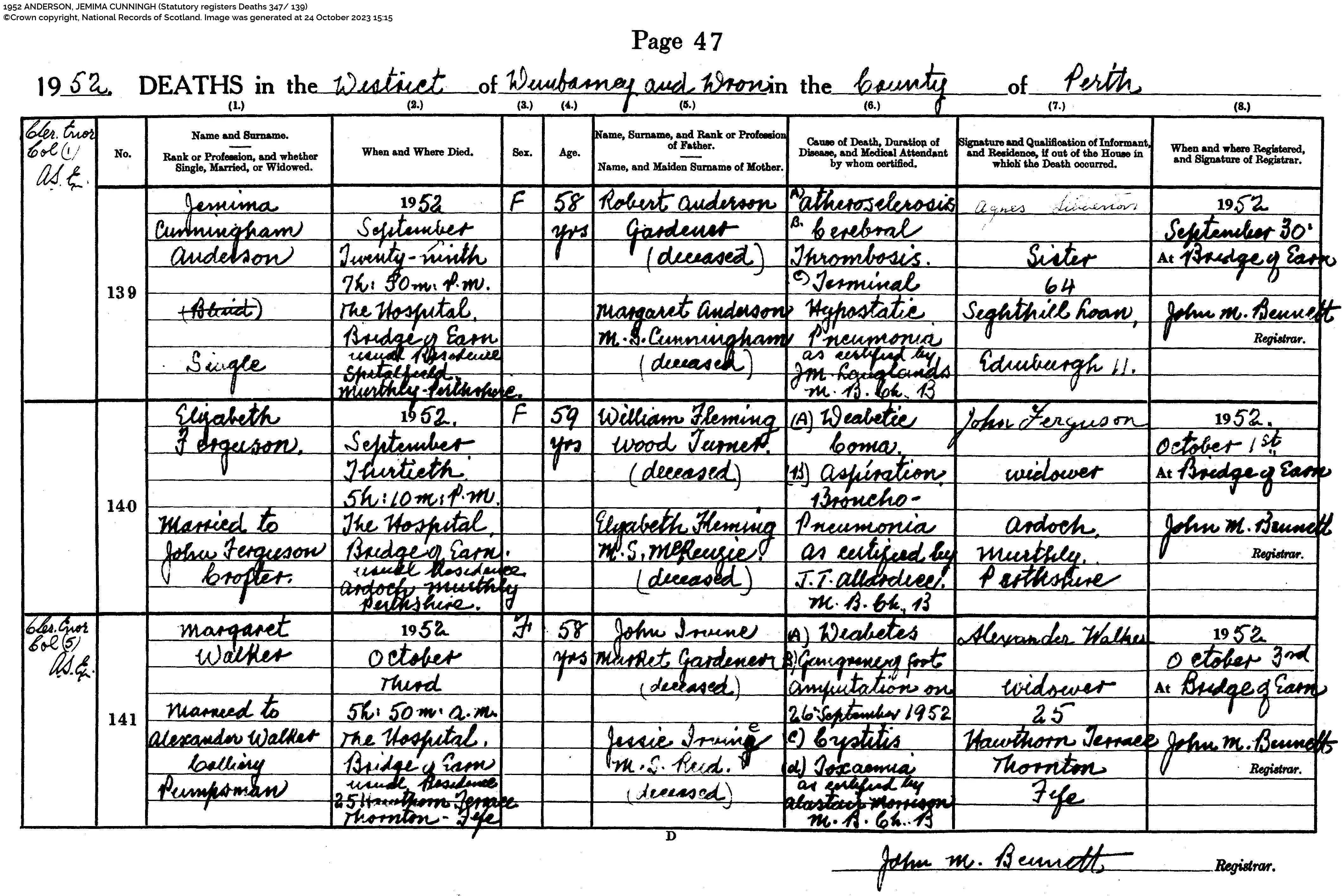 | 261 | SP | STAT | DEA | 1952 | R241.jpg | 1952-09-29 DEA Jemima Cunningham Anderson – Bridge of Earn [[R241]] | LOCAL | ONLINE |