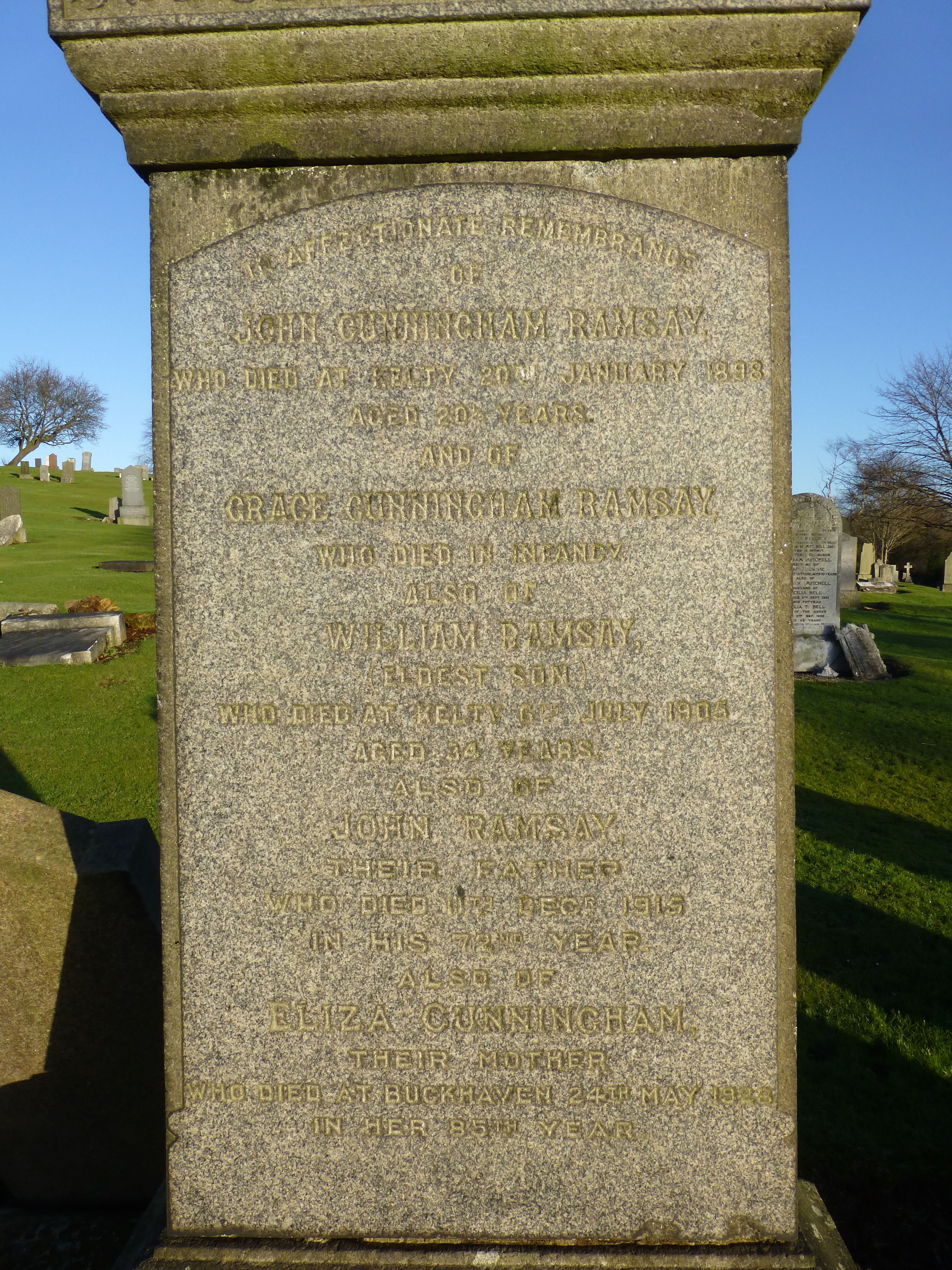 | 200 | BG | MON | GRA | 1987 | R180.jpg | 1932-06-19 Gravestone of Colin, Mary Hunter, George & Euphemia Ramsay [[R180]] | LOCAL | ONLINE |
