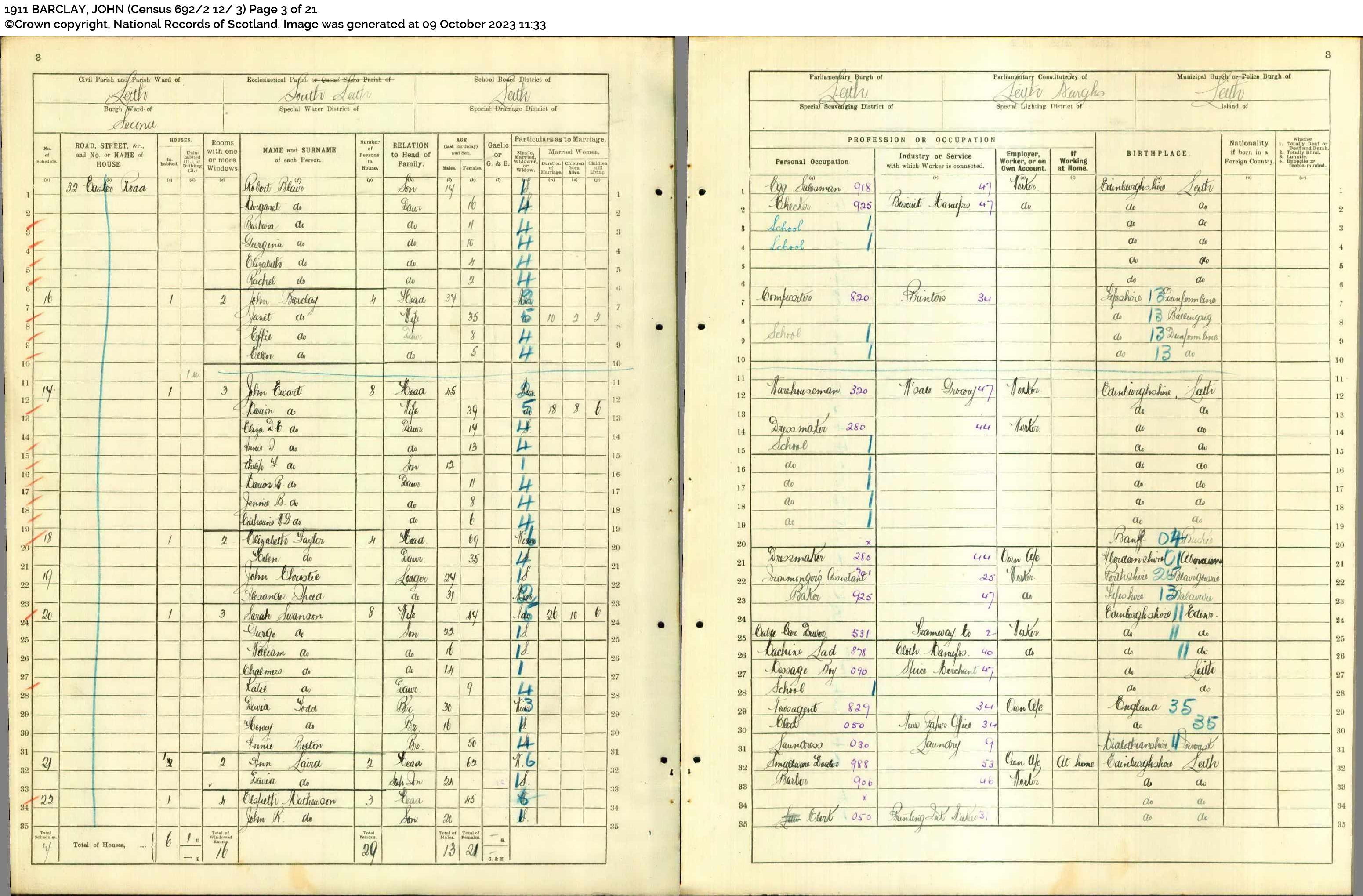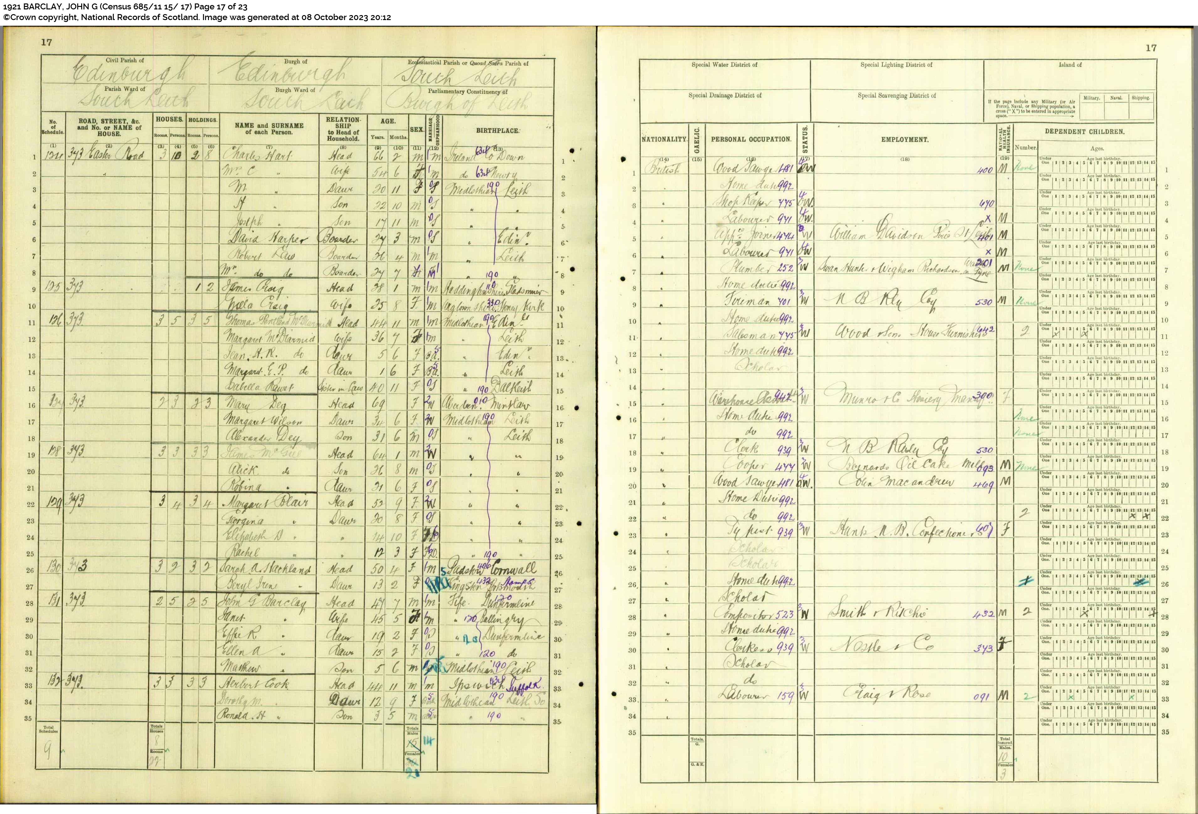 | 296 | SP | STAT | CEN | 1921 | R266.jpg | 1921-06-19 CEN John G Barclay + Janet Ramsay Beck – 373 Easter Road, South Leith, Edinburgh, Midlothian [[R266]] | LOCAL | ONLINE |