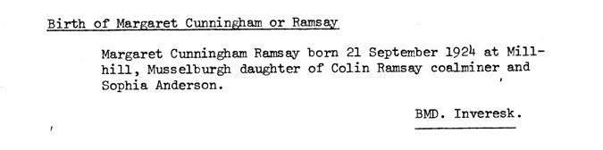 | 321 | SARS | STAT | BIR | 1924 | R291.jpg | 1924-09-21 BIR Margaret Cunningham Ramsay child of Colin Ramsay + Sophia Anderson [[R291]] | LOCAL | ONLINE |