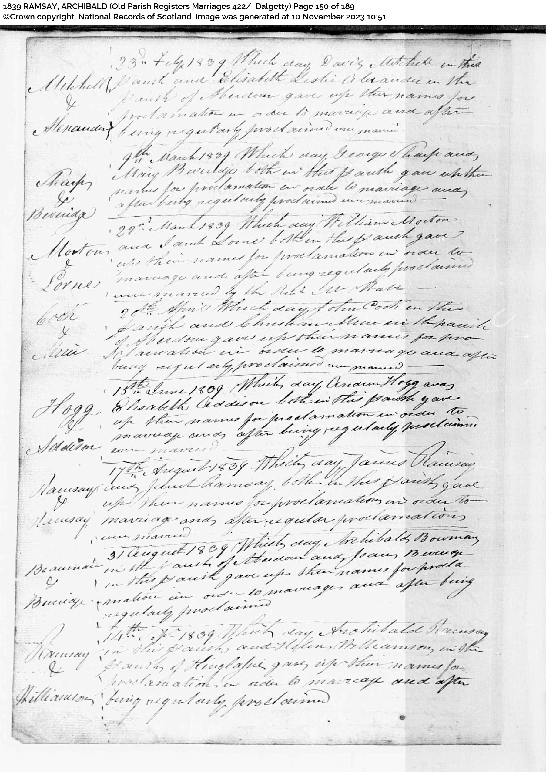 | 325 | SP | CH | MAR | 1839 | R295.jpg | 1839-09-14 MAR Archibald Ramsay + Helen Williamson – Dalgetty [[R295]] | LOCAL | ONLINE |