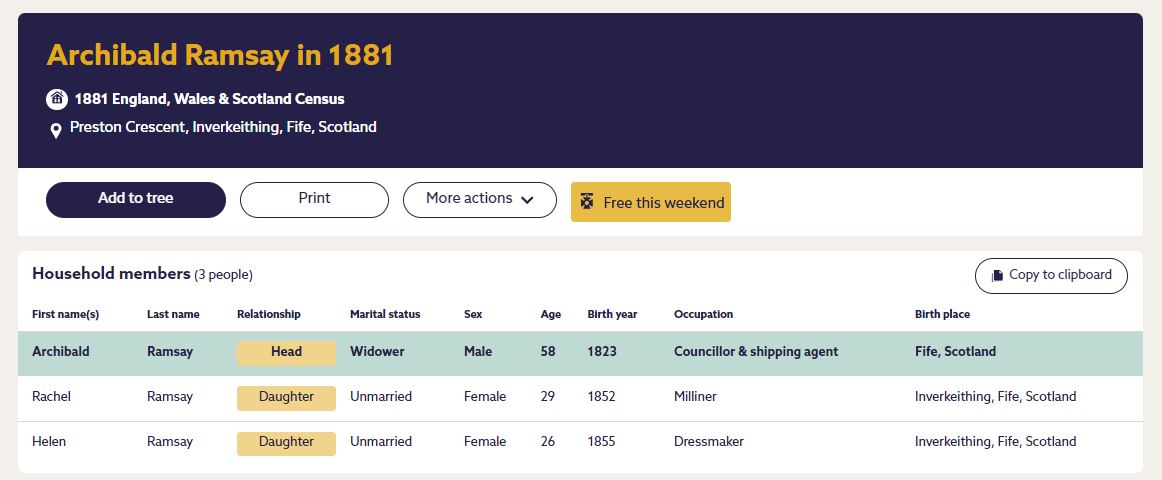 | 328 | Freecen | STAT | CEN | 1851 | R298.jpg | 1851-03-30 CEN Archibald Ramsay + Helen Williamson – Shore, Inverkeithing [[R298]] | LOCAL | ONLINE |