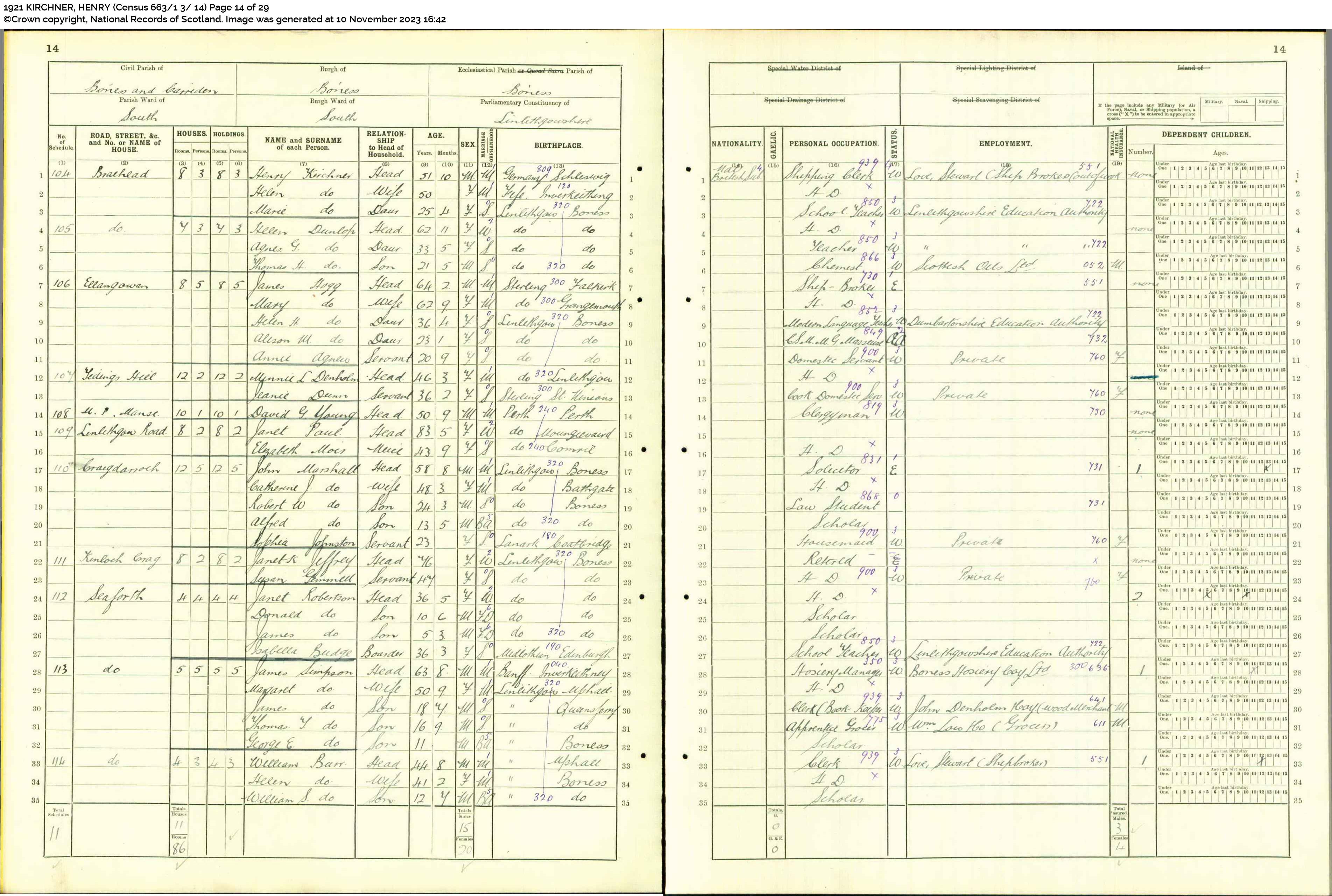 | 335 | SP | STAT | CEN | 1921 | R305.jpg | 1921-06-19 CEN Henry Kirchner + Helen Ross dau of Alexander Ramsay + Helen Wiliamson – Bo’ness [[R305]] | LOCAL | ONLINE |