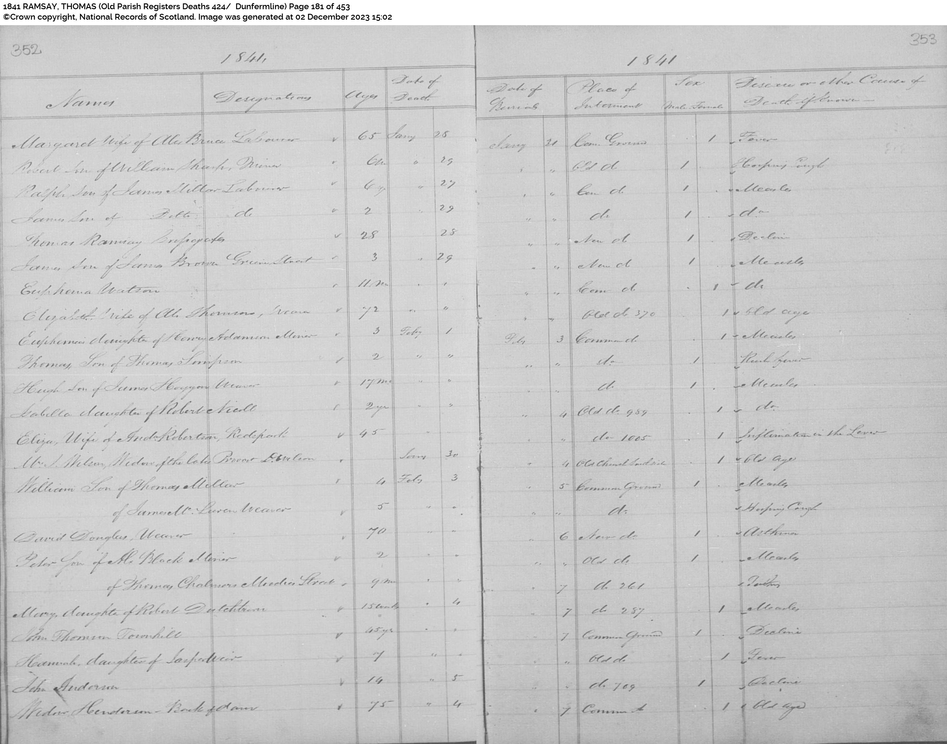 | 348 | SP | SP | DEA | 1841 | R316.jpg | 1841-01-28 DEA John Ramsay aged 28 at Crossgates (possible son of John Ramsay and Janet Penman [[R316]] | LOCAL | ONLINE |
