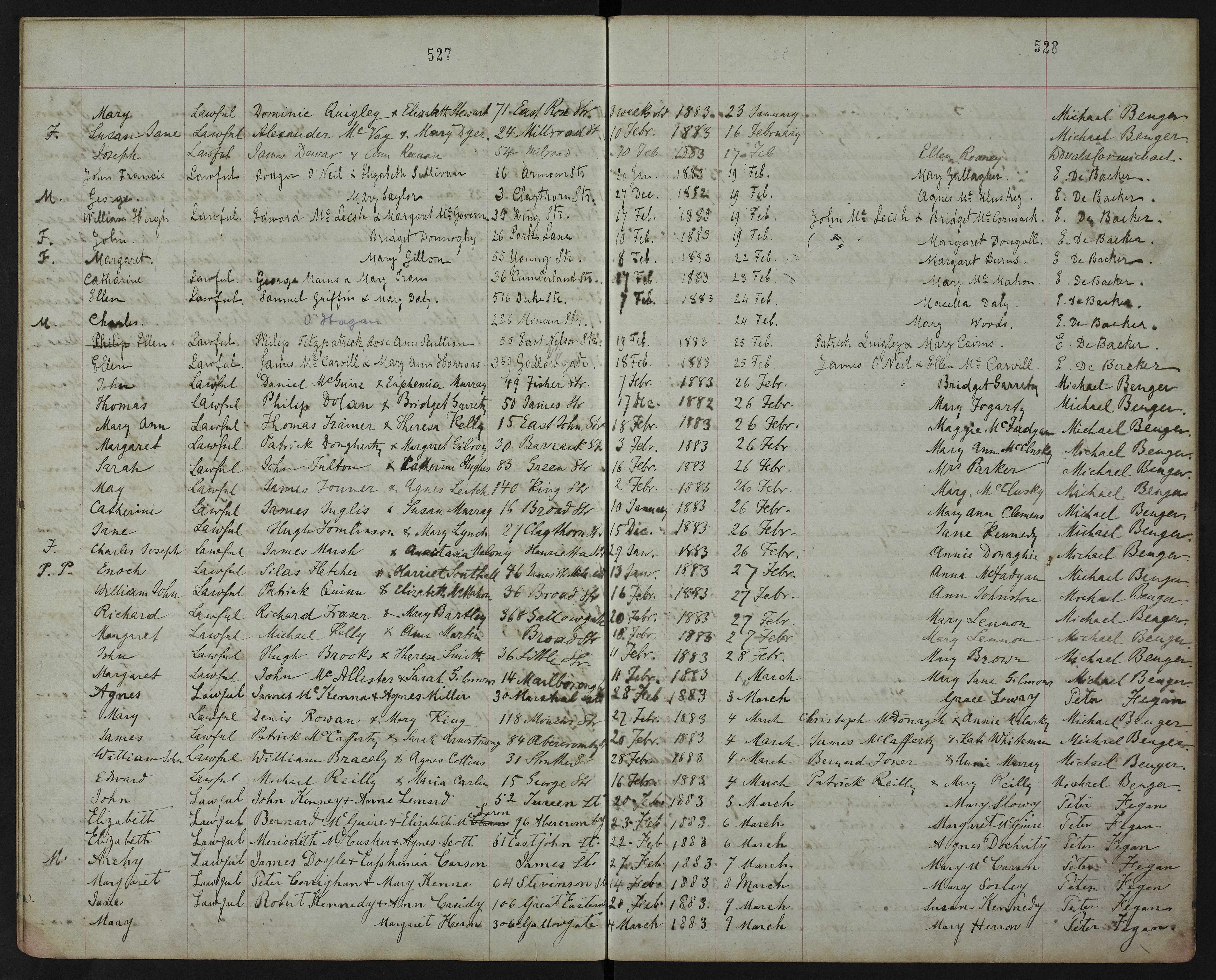 [born] 29 DEC 1888 [address] 23 Marshall Street [baptised] 14 JAN 1889 [name] Mary McKenna [father] James McKenna [mother] Agnes Millour [witness] Mary McGee